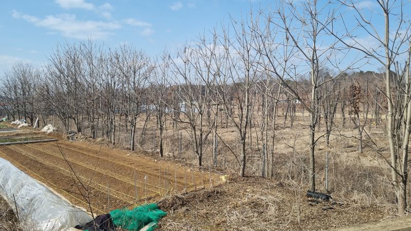 2025봄 가뭄이 심합니다.그래서 지 하수를 스프링쿨러로 충분하게 뿌려 줍니다.