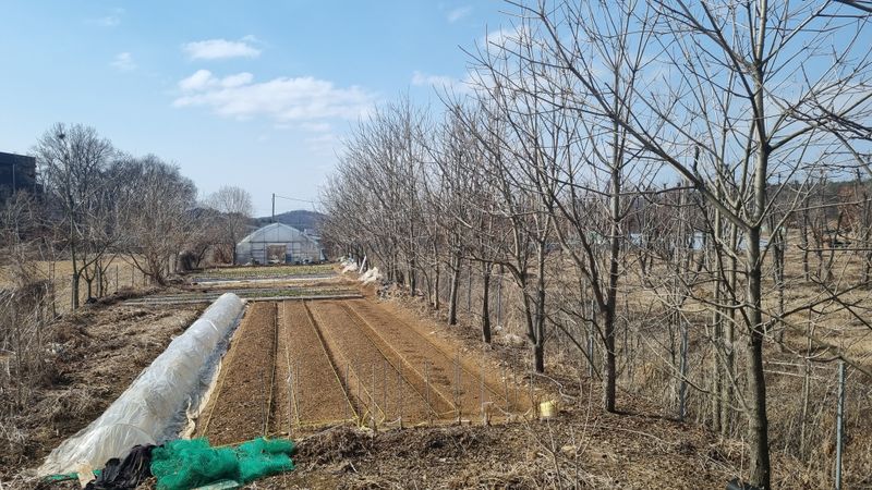 오늘은 지난해 겨울 내내 묵은 밭고랑을 조성했읍니다. 1.2m×20.0m/5고랑/130제곱미터 40평