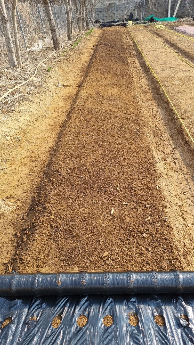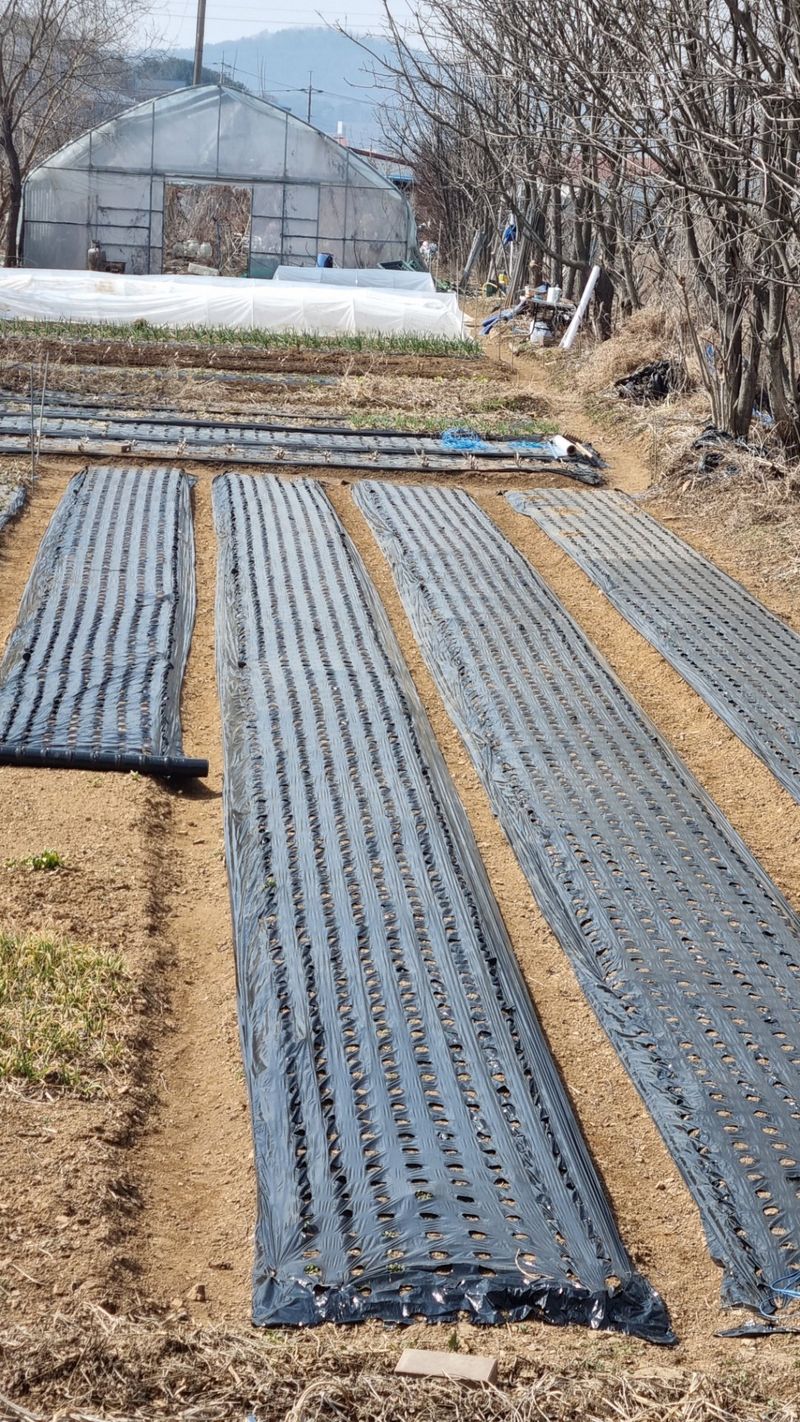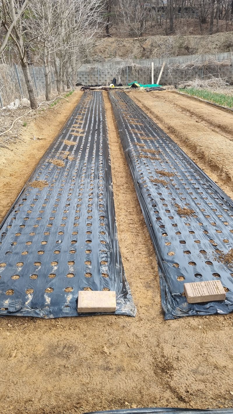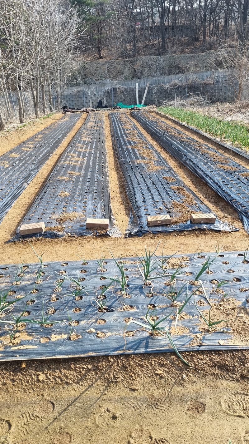 오늘은 밭고랑 정리하고 멀칭도 했지요. 8구X250열5고랑 총10,000구입니다.마늘 파종시 100접수확하죠.