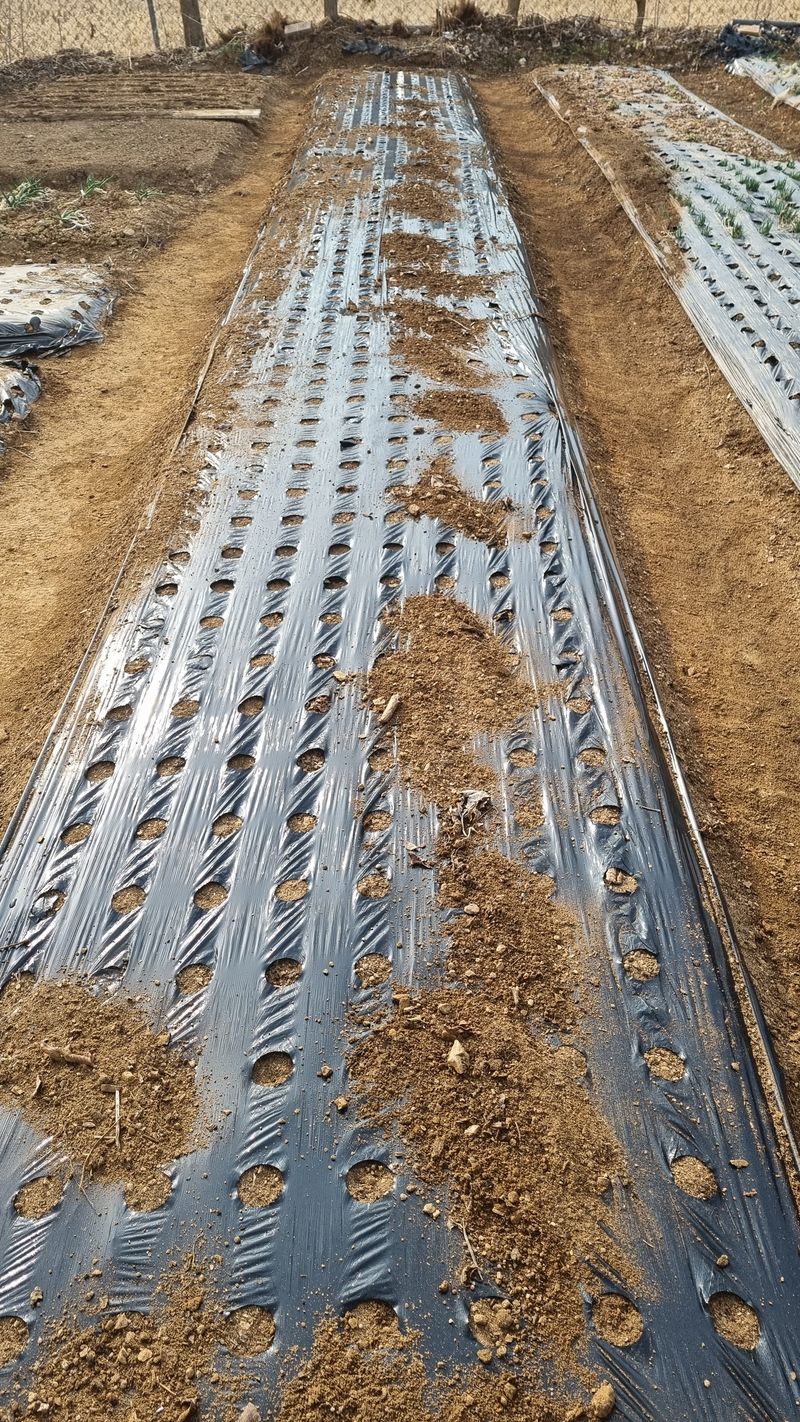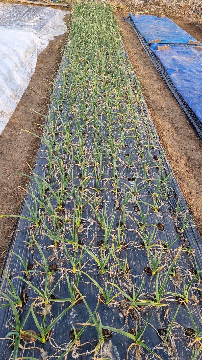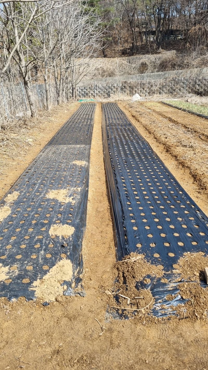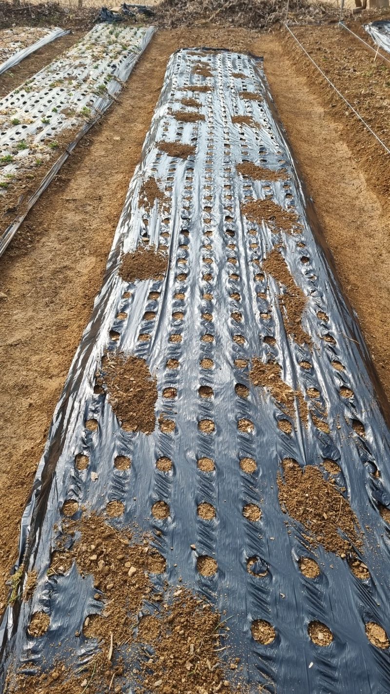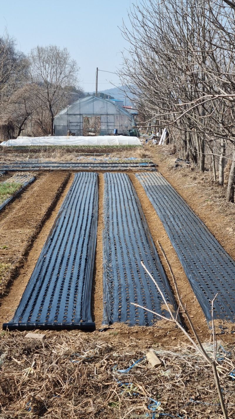 오늘은 밭고랑 정리하고 멀칭도 했지요. 8구X250열5고랑 총10,000구입니다.마늘 파종시 100접수확하죠.