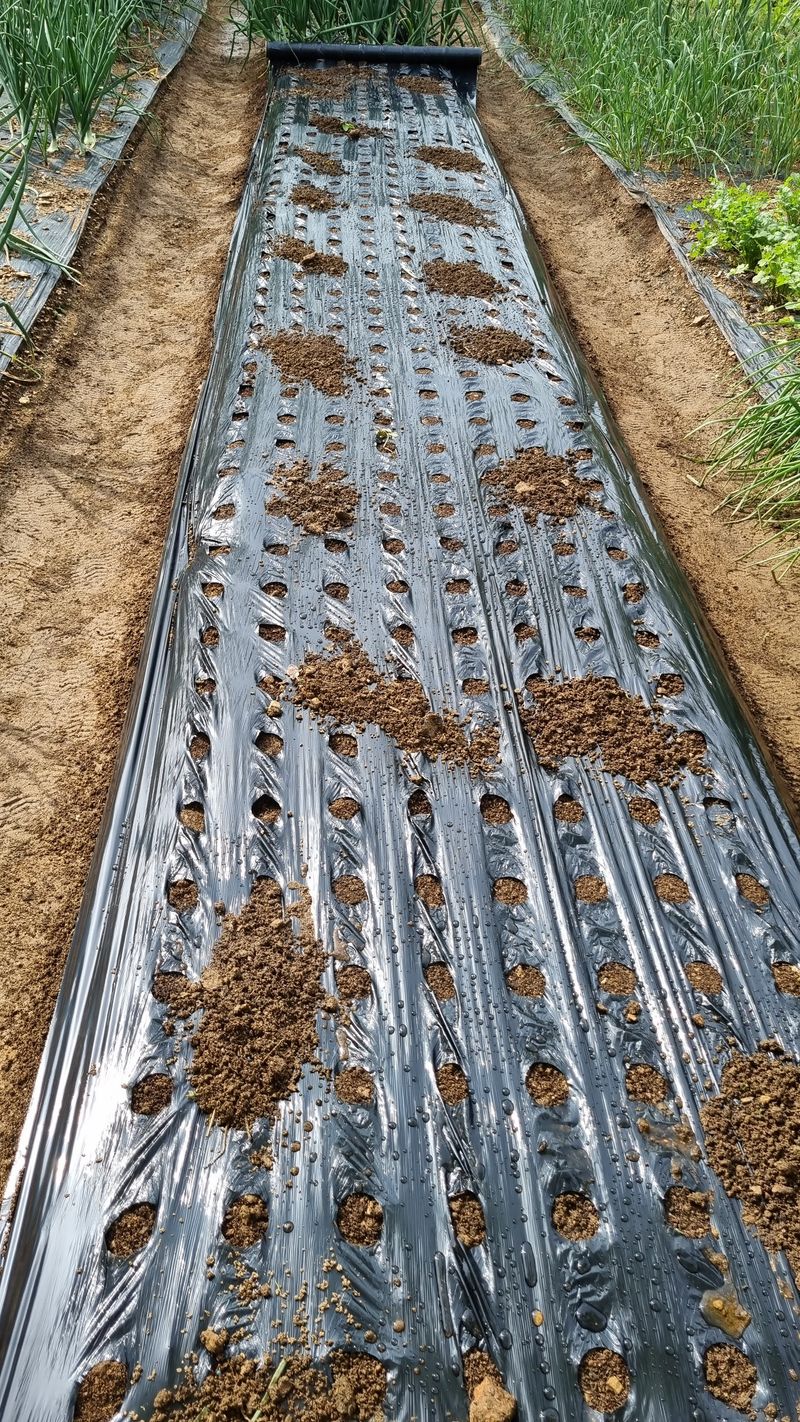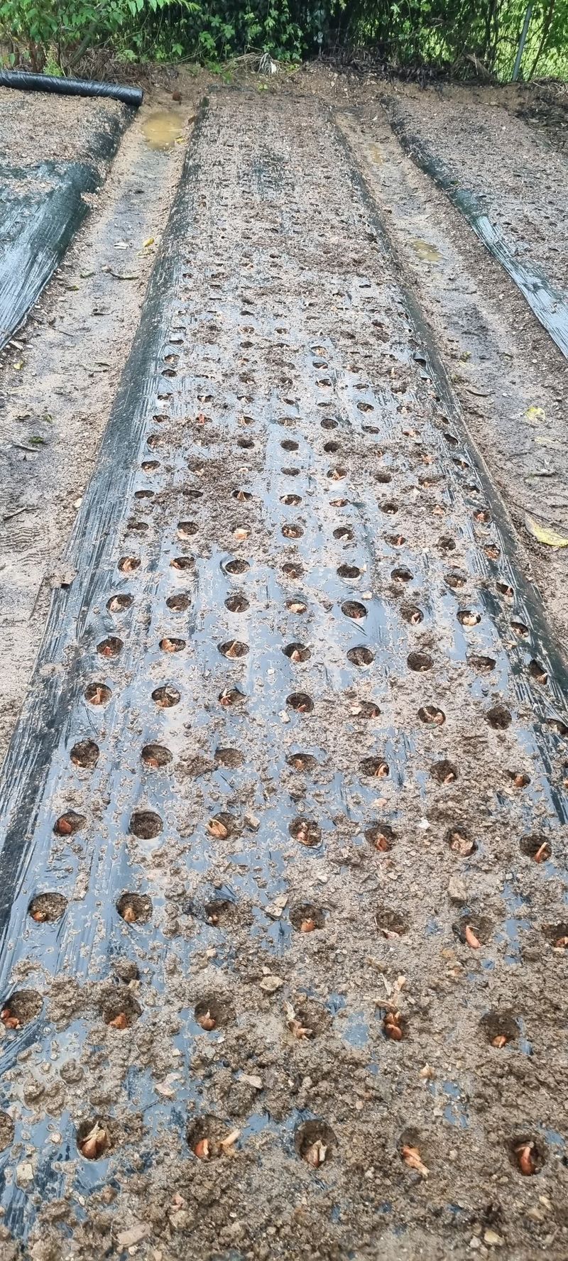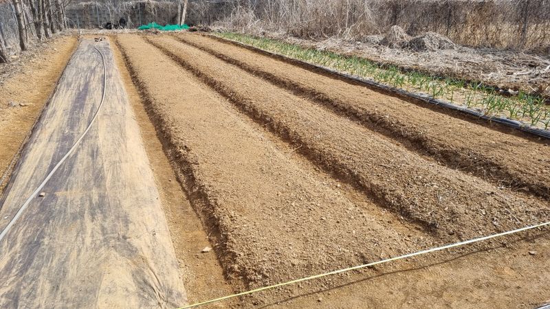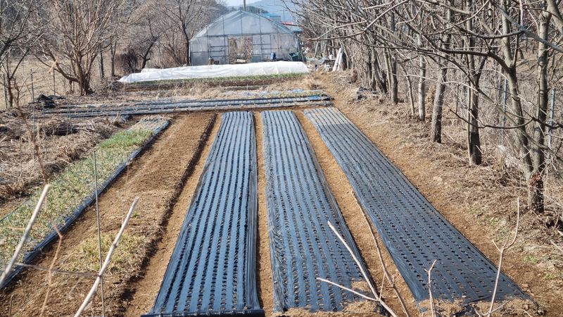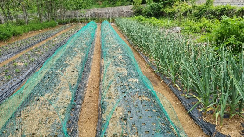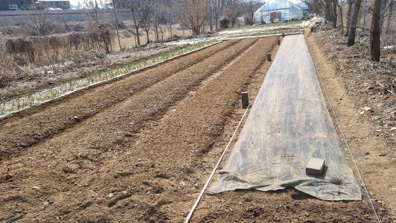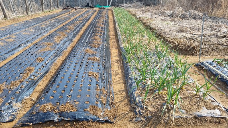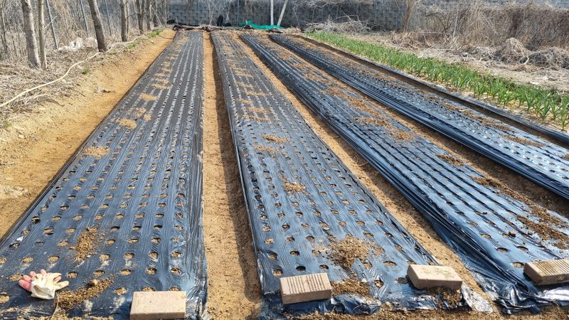 오늘은 밭고랑 정리하고 멀칭도 했지요. 8구X250열5고랑 총10,000구입니다.마늘 파종시 100접수확하죠.