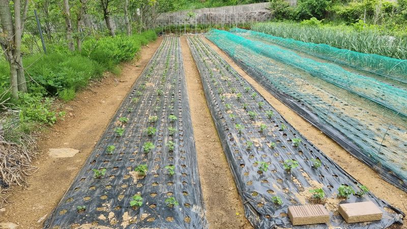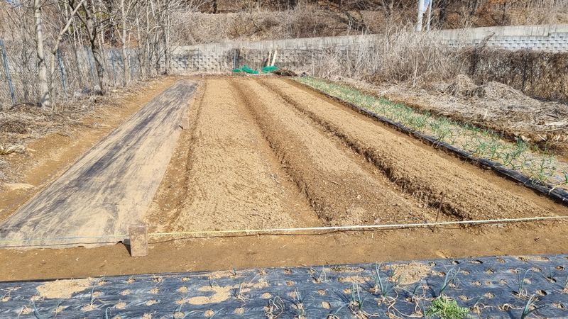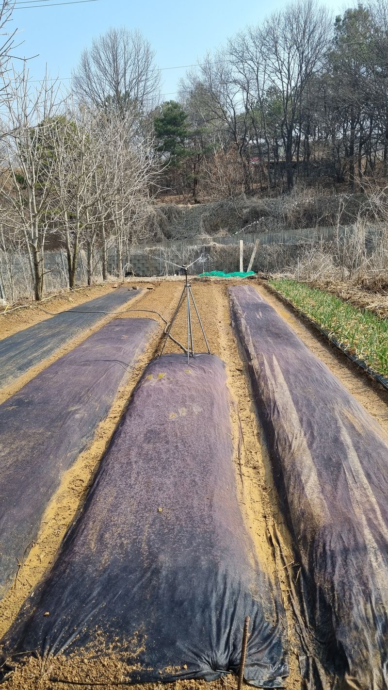 오늘은 밭고랑 마져 정리하고 멀칭도 씌웠읍니다.