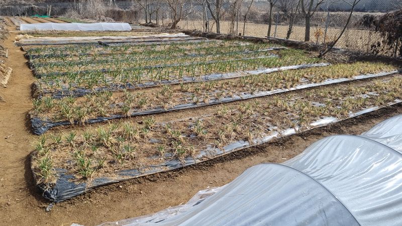 2025.02.28홍산마늘 쪽파밭등 소형터널 베껴주고, 3.1은 1차로 요소비료도 추비하고 3.1~3.3봄비도 20.8밀리가 오고 이제 날씨가 개이면 소독약도 살포해야겠지요.