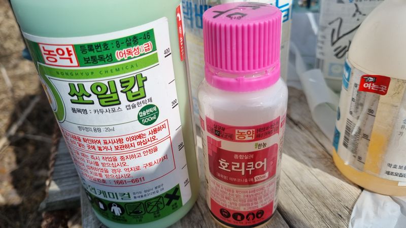 오늘은 살균제와 살충제 살포하고 대유구근빅 영양제 살포했읍니다.