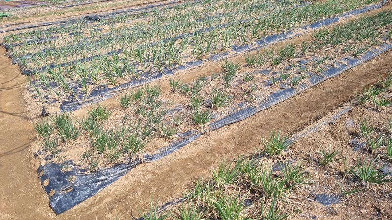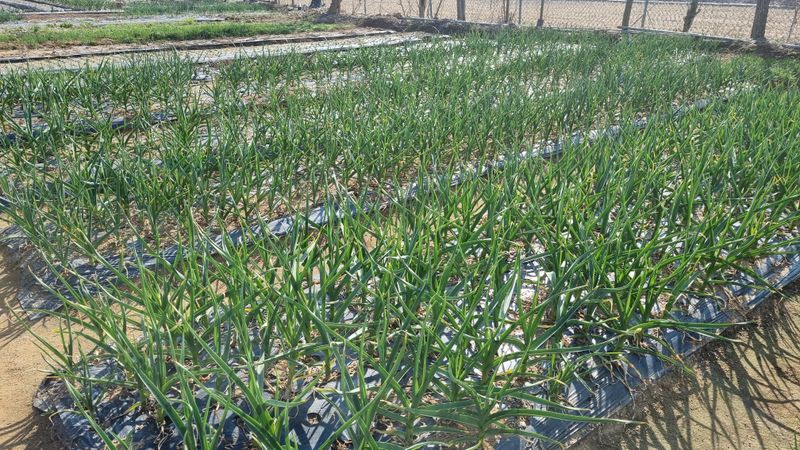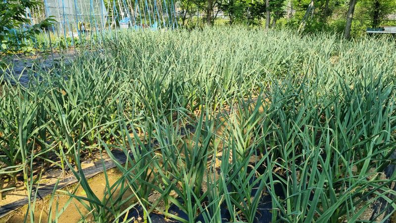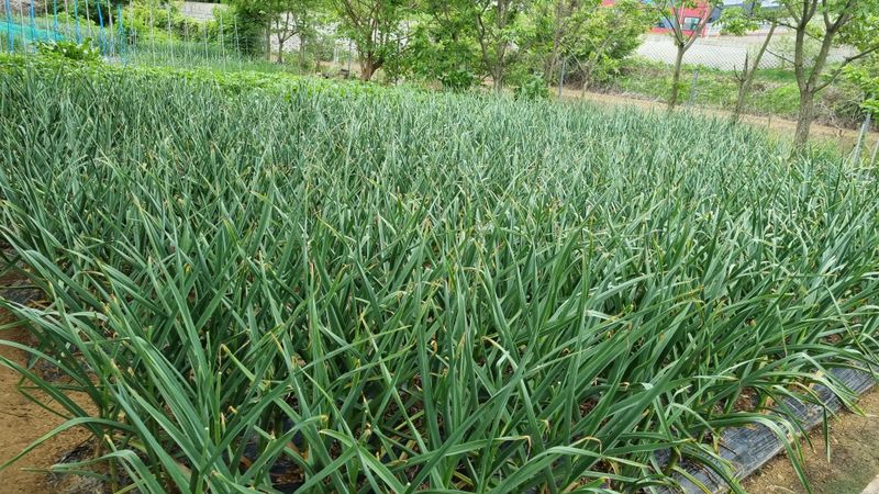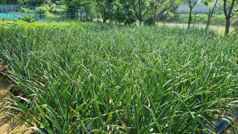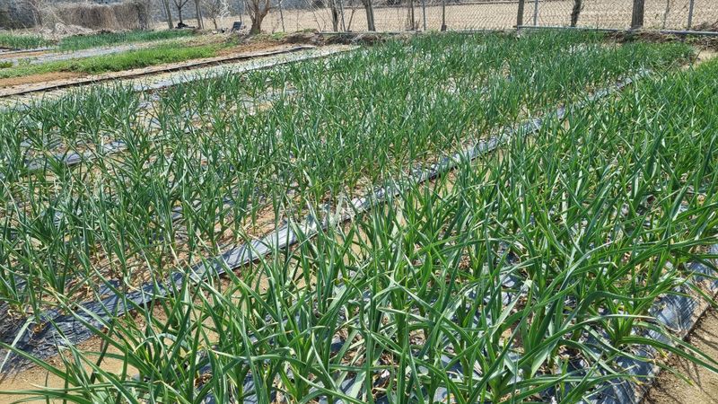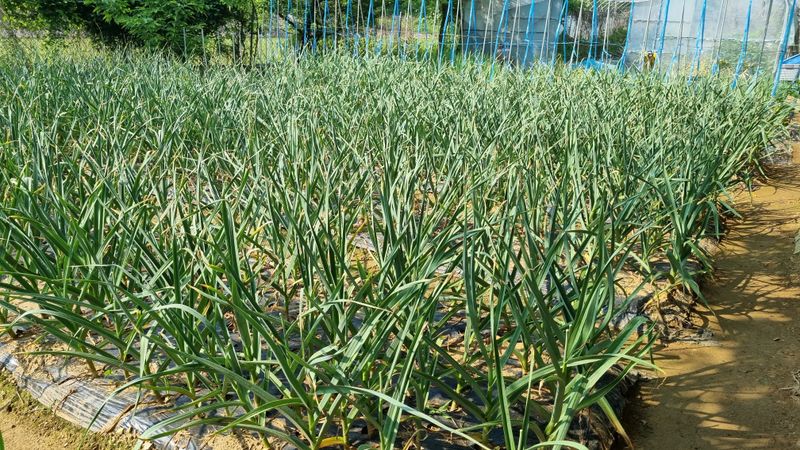 홍산마늘 살균제 살충제 살포했읍니다. 수확 D-30