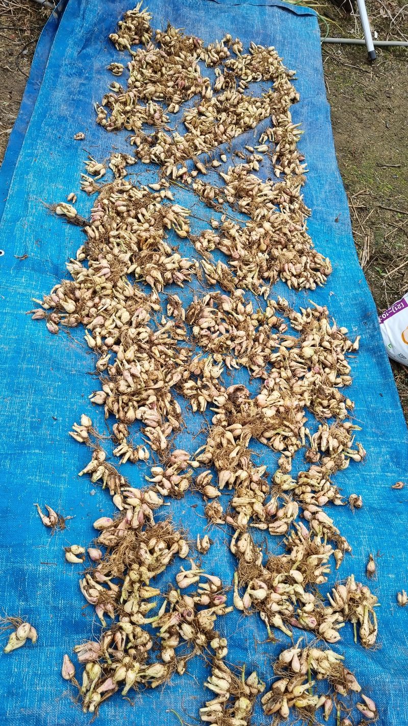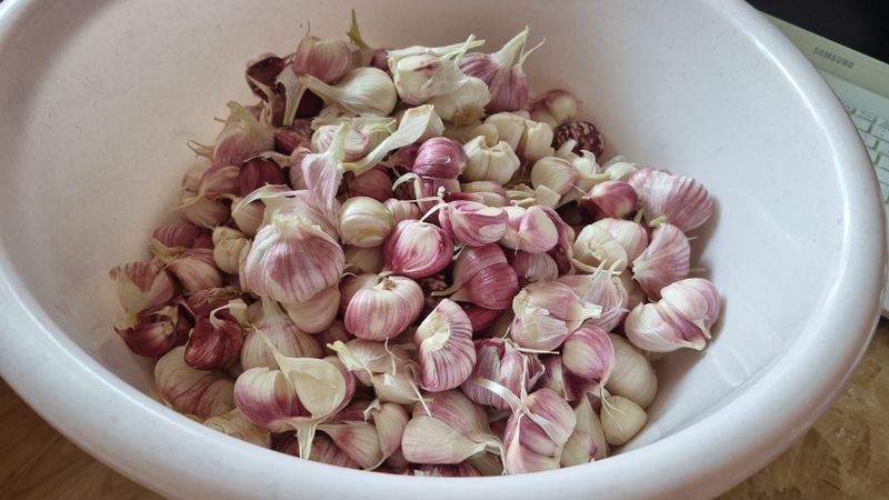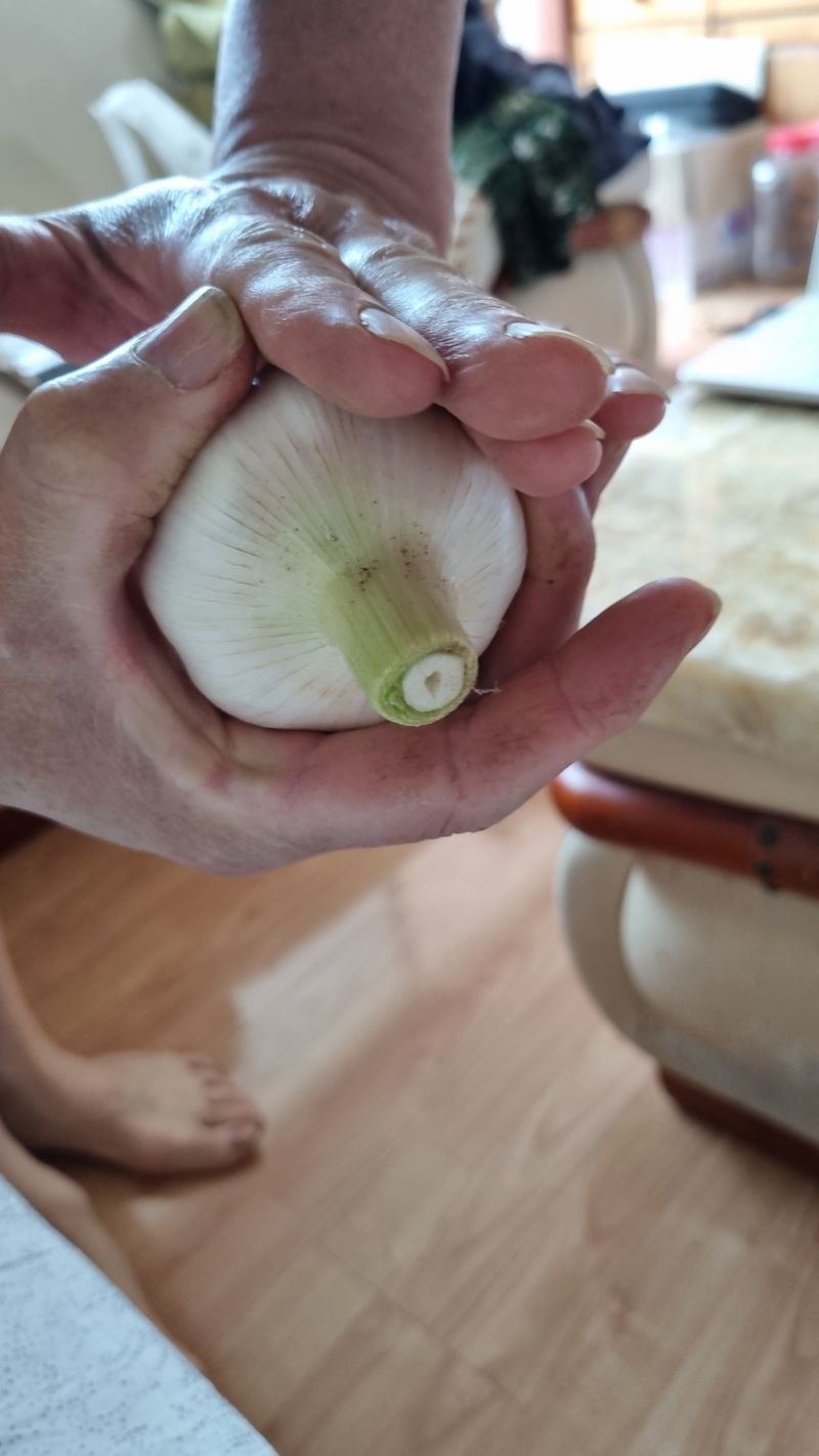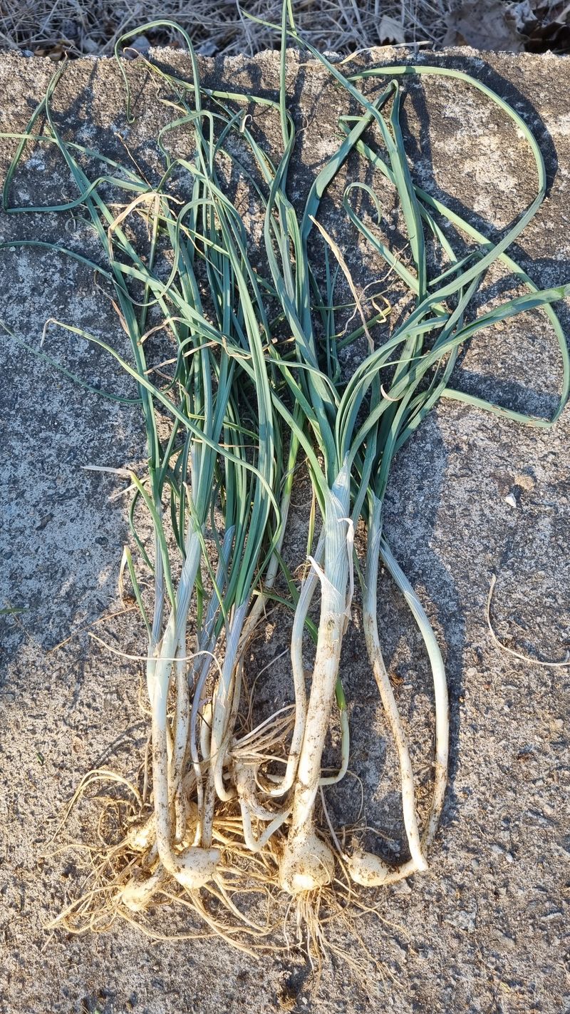 쫑 뽑으려다가 마늘이 통째로 뽑혔네요.
