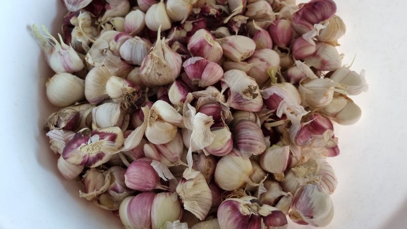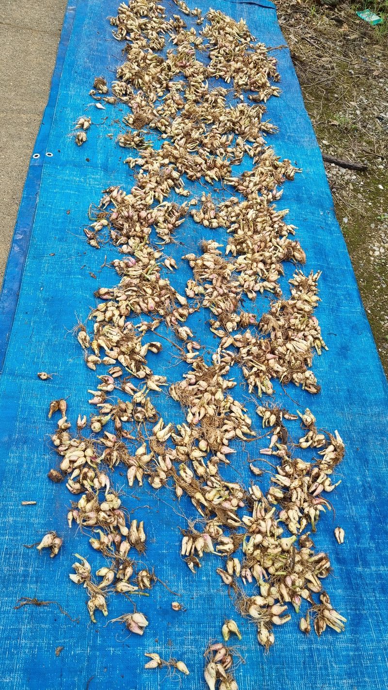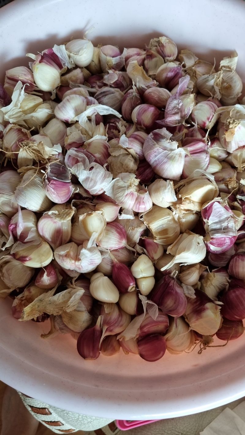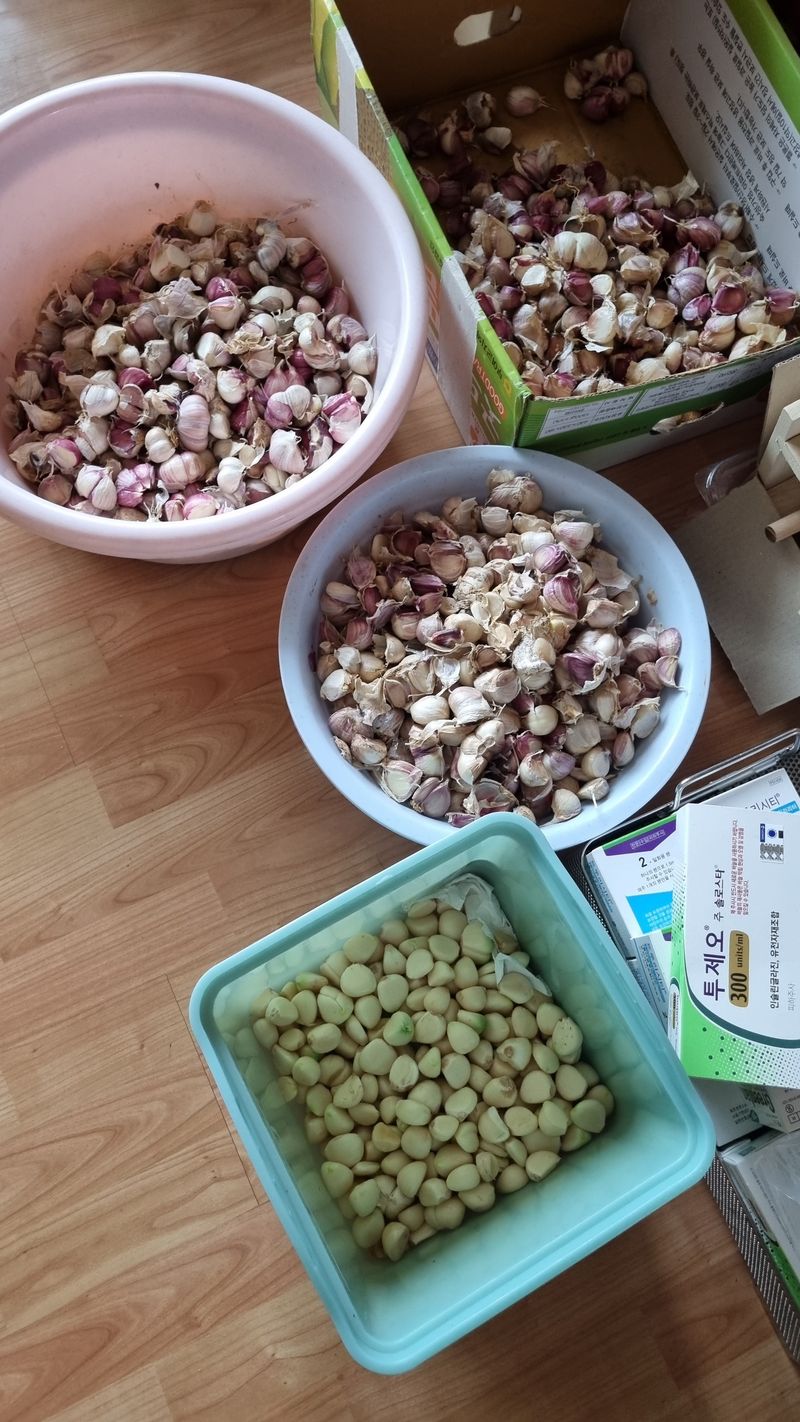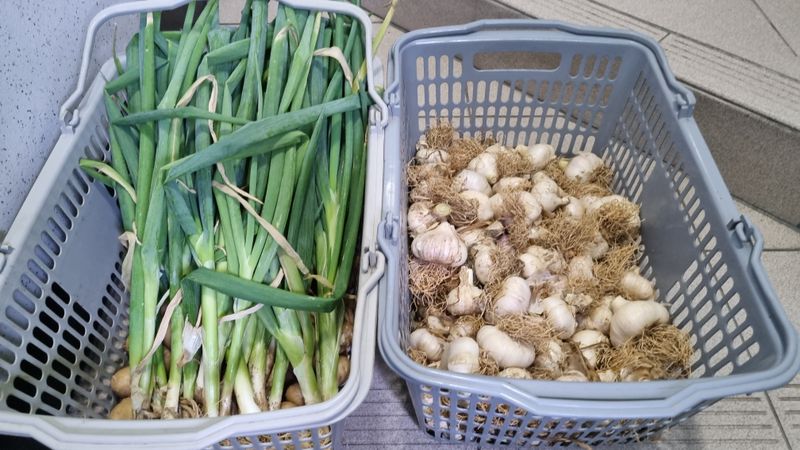 쫑 뽑으려다가 마늘이 통째로 뽑혔네요.