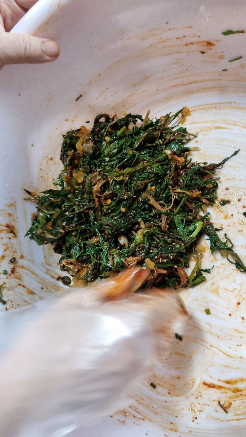 어제 수확해온 냉이 달래 씀바귀등 나물 무침입니다.