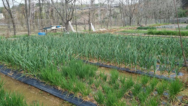 오늘은 몇일전 뽑아 놓은 쪽파 종근 정리하고 마늘밭에 소독약도 뿌리고 채소밭도 소독약쳤어요.
