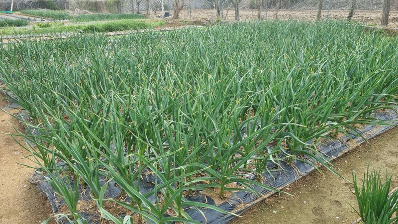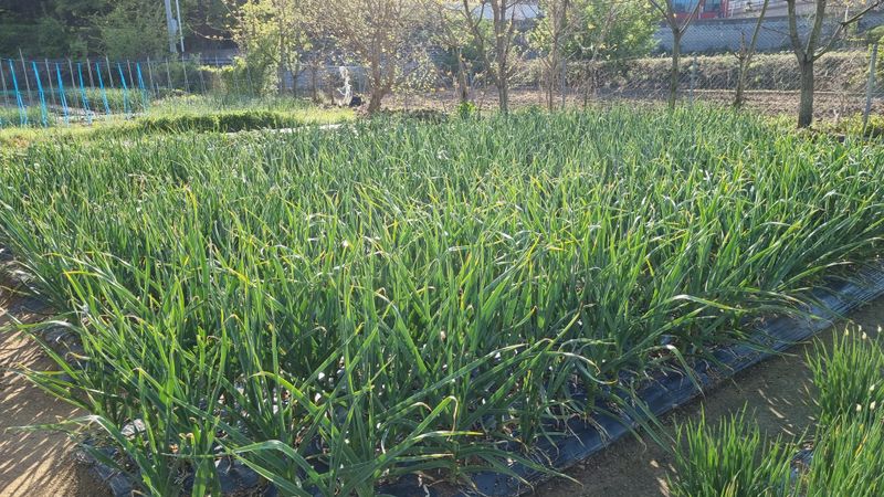 마늘에는 살충제와 살균제를 뿌려줘 야하고 쫑이 올라오는 즉시 뽑아줘야하고 구근비데영양제나 비료도 줘야죠.