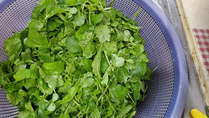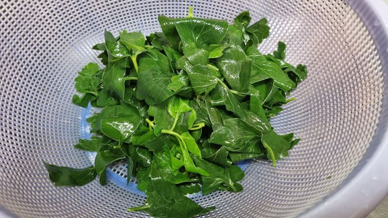 오늘은 어제 봄비가 49.5밀리가 와서 그런지 고사리 무싹 쌈채소를 수확했다.