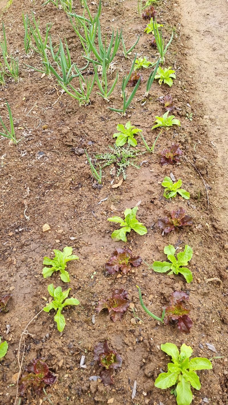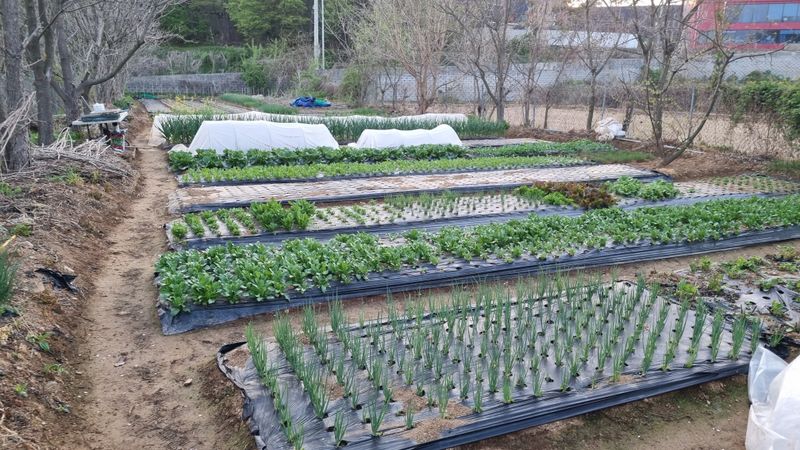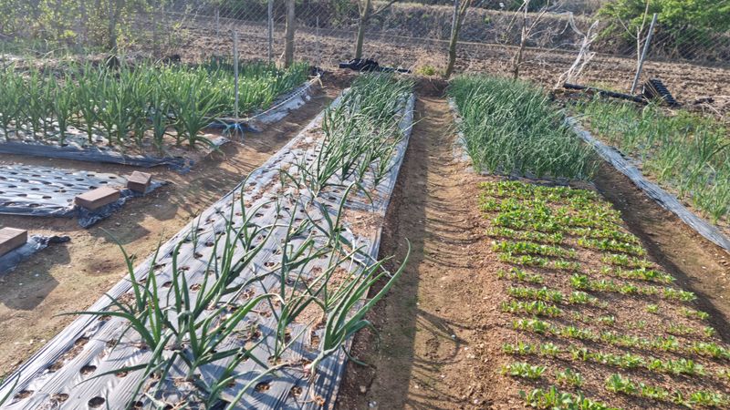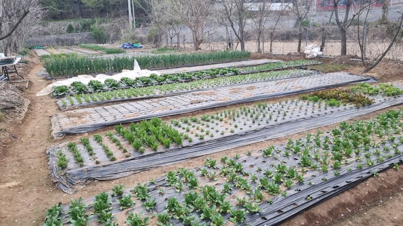 엊그제 비가 49.5밀리가 오고 날씨가 따 뜻해지니 농작물은 거침 없이 자라주네요. 홍산마늘ㆍ돼지파ㆍ달래파ㆍ쪽파ㆍ상추ㆍ봄배추ㆍ열무ㆍ알타리ㆍ봄무ㆍ감자ㆍ양파ㆍ참취ㆍ땅두룹ㆍ더덕ㆍ고사리ㆍ옻나무등등입니다. 열무와 알타리 봄무는 솎음해다 된장국 그리고 물김치 만들어 먹읍니다.