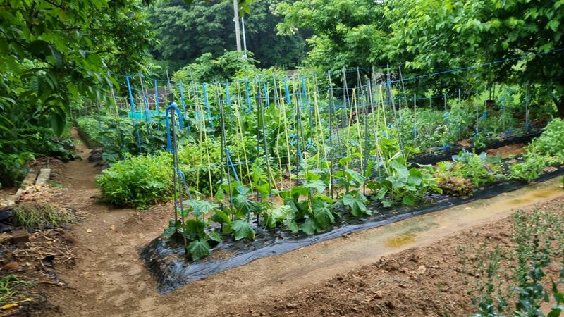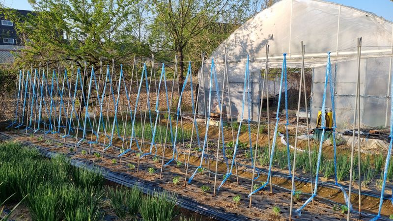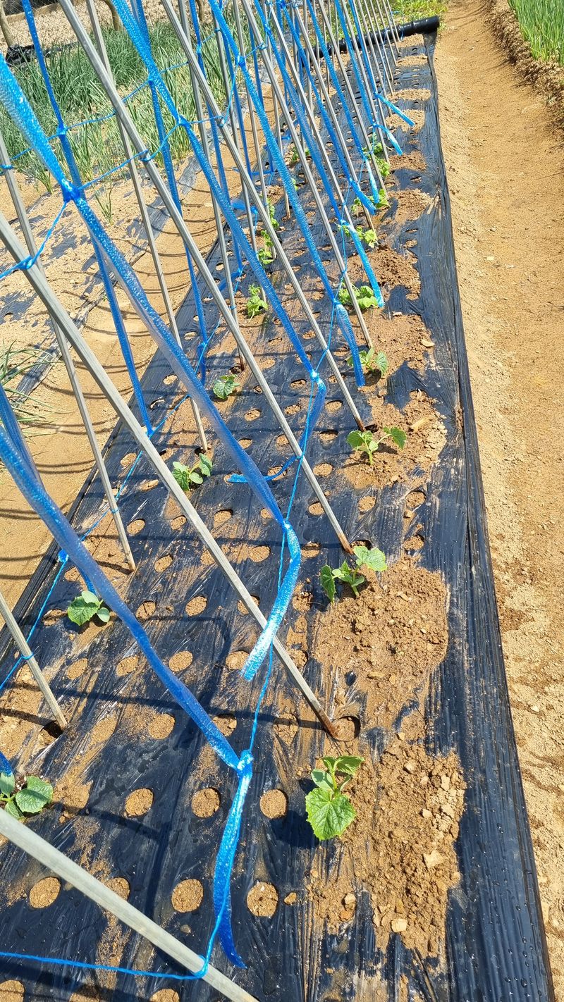 청어람 오이 50주 30000원 구입 본답에 심고 지주대 세우고 유인끈 매어주고
