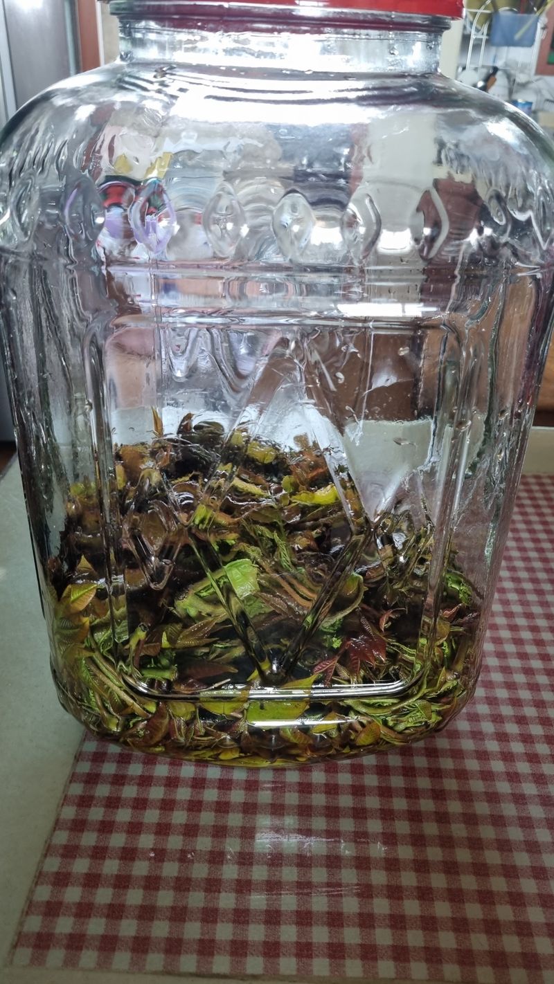 명이짱아찌 담근것처럼 담근다. 옻순 1,540g으로 짱아찌 담금고 물500ml 국간장200ml 양조간장300ml 설탕300g 소주200ml 물500ml 양파 1/2 표고3개 대추5개 마늘5쪽 이상은 1kg기준입니다.