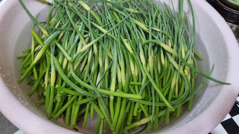 오늘은 마늘 쫑꺾끼합니다.뽑으련니 마늘이 뽑혀서 꺾기로 합니다.