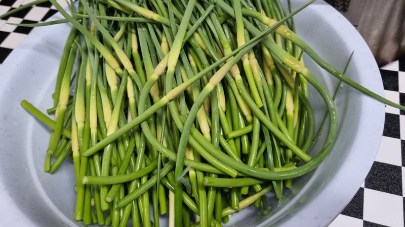 오늘은 달래파를 모두 뽑아서 건조 중입니다.