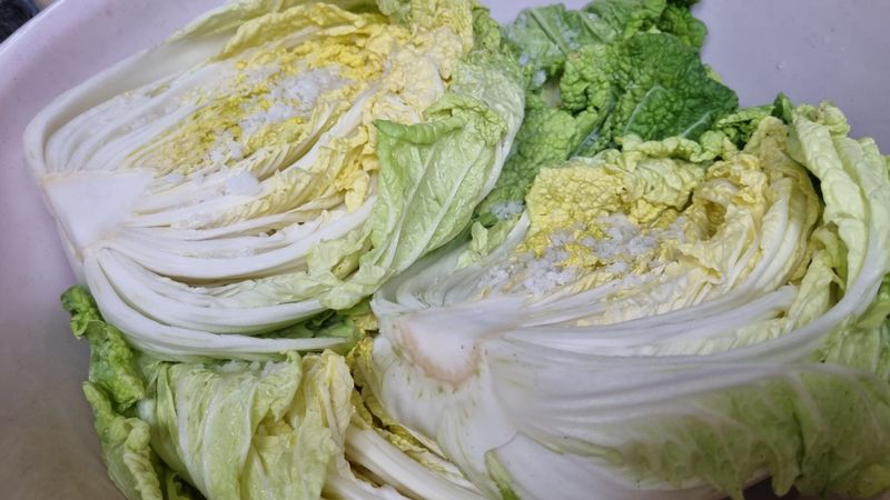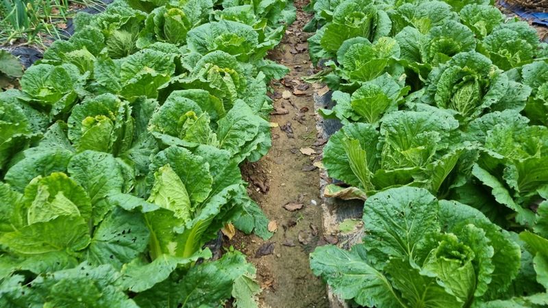 오후엔 배추들이 시들 시들하군요 햇볕이 너무 오랫만에 떳어요.