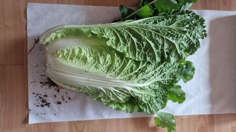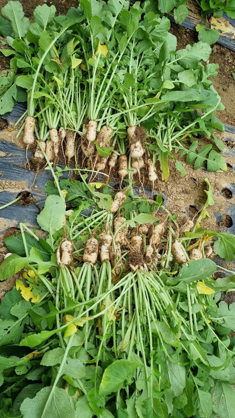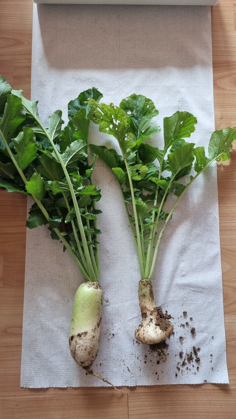 배추속이 챦나요? 7월30일 씨앗넣고 재배한 배추 한포기와 김장무 알타리를 한개씩 뽑아왔읍니다.