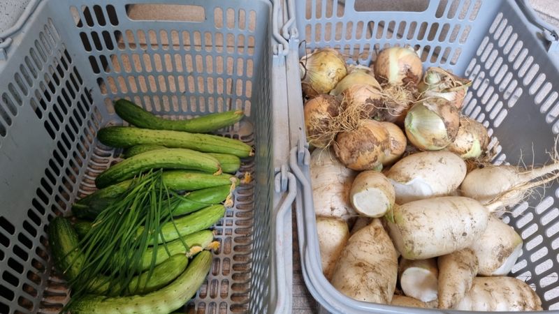 오늘은 이것 저것 수확했읍니다. 쪽파 고수 부추등등 그리고 백다다기는 50개 구입했읍니다.