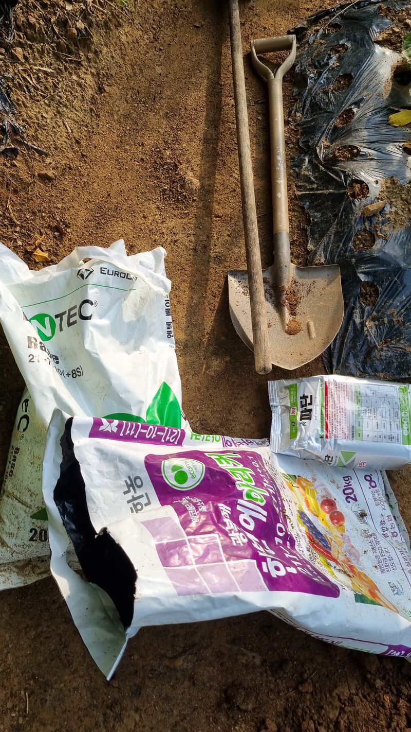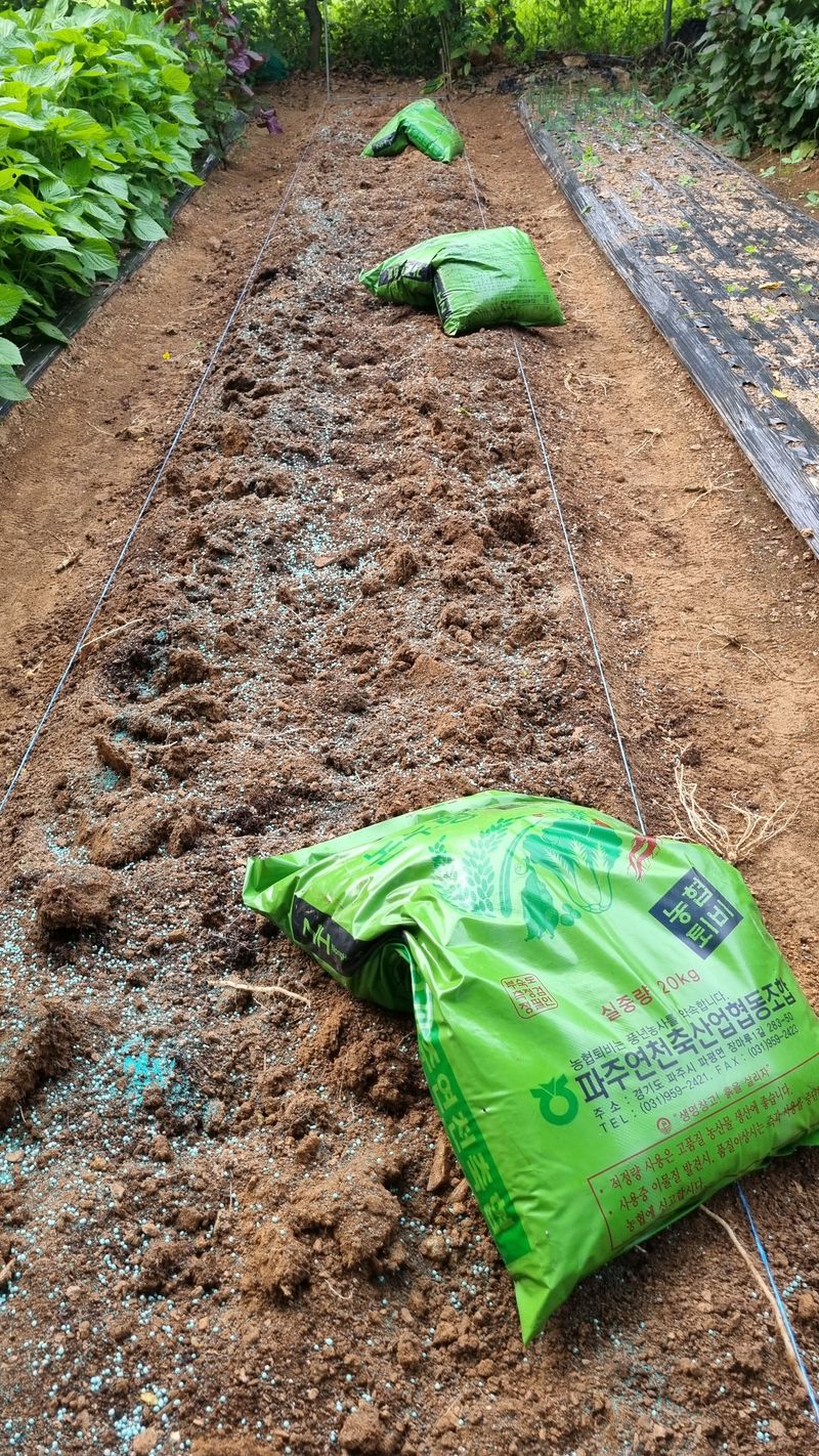 홍산 마늘 종자 쪼개기와 배추밭 약치고 비료 주기 했읍니다
