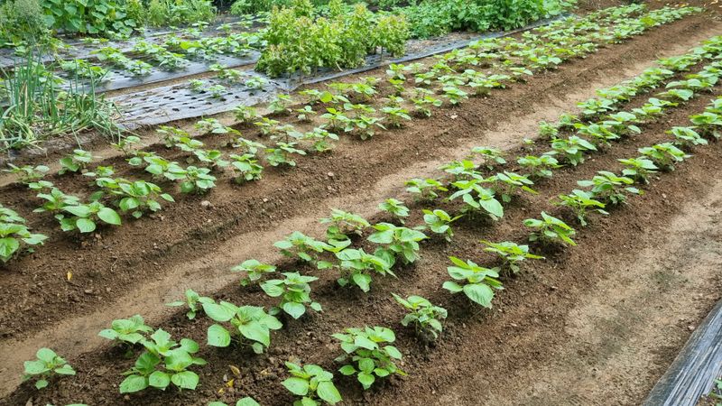20250502일에 파종한 장단콩 (서리태)이 예쁘게 잘 나오고 있읍니다. 2고랑은 5.22일에 파종합니다.