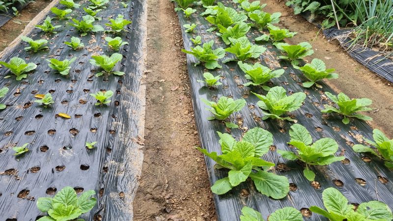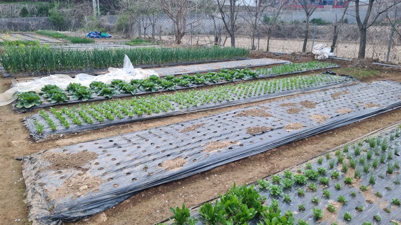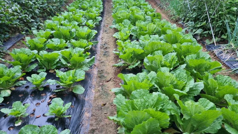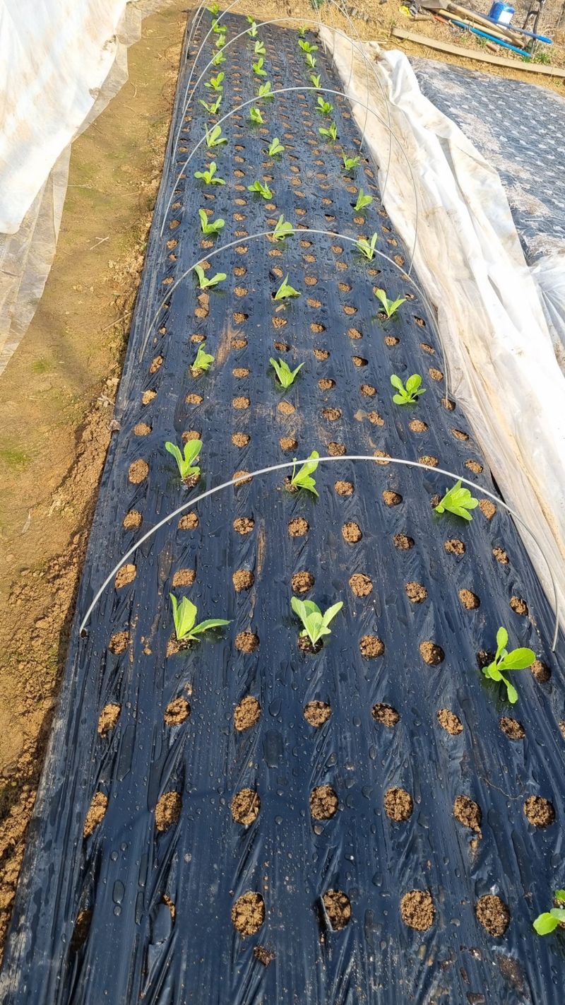 상추와 배추입니다. 2025.4.1배추25포기 상추25포기 모종 구입해 심었는데 날씨가 추워서 잘자라지 않네요.