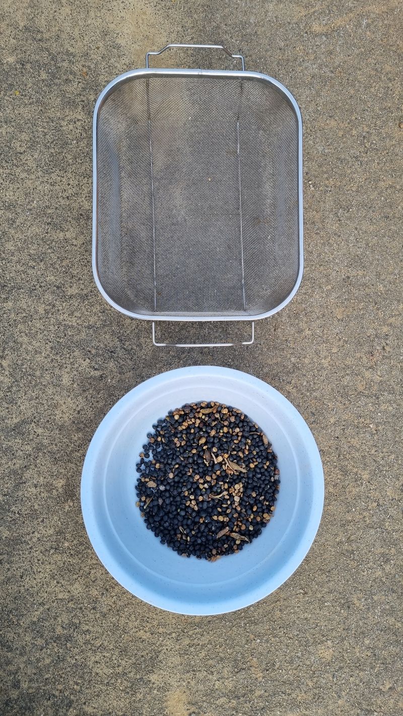 소만콩 100g을 3420원에 구입하 여 지난 6월13일에 파종했고 몇일전 뽑아 건조중인 소만콩은 1차로 털었다.