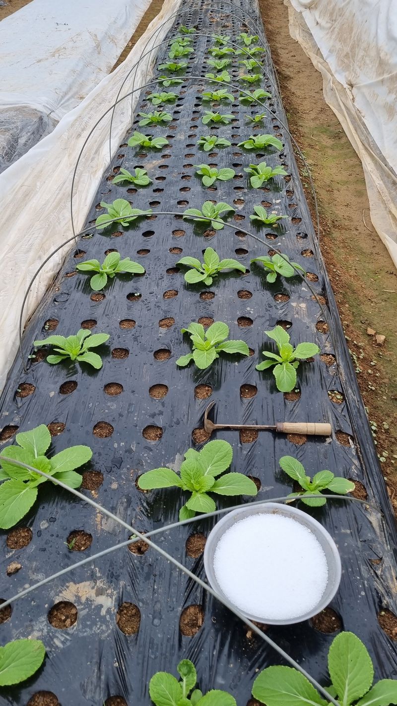 봄배추에 요소비료 10g씩 넣었읍니다.