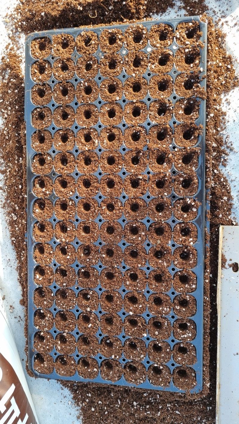 트레이에 씨앗 넣기했어요