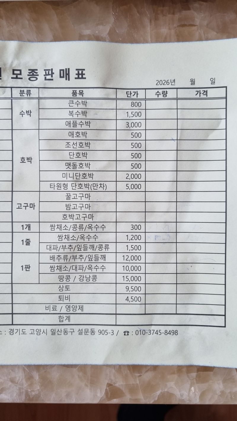 각종 모종가격