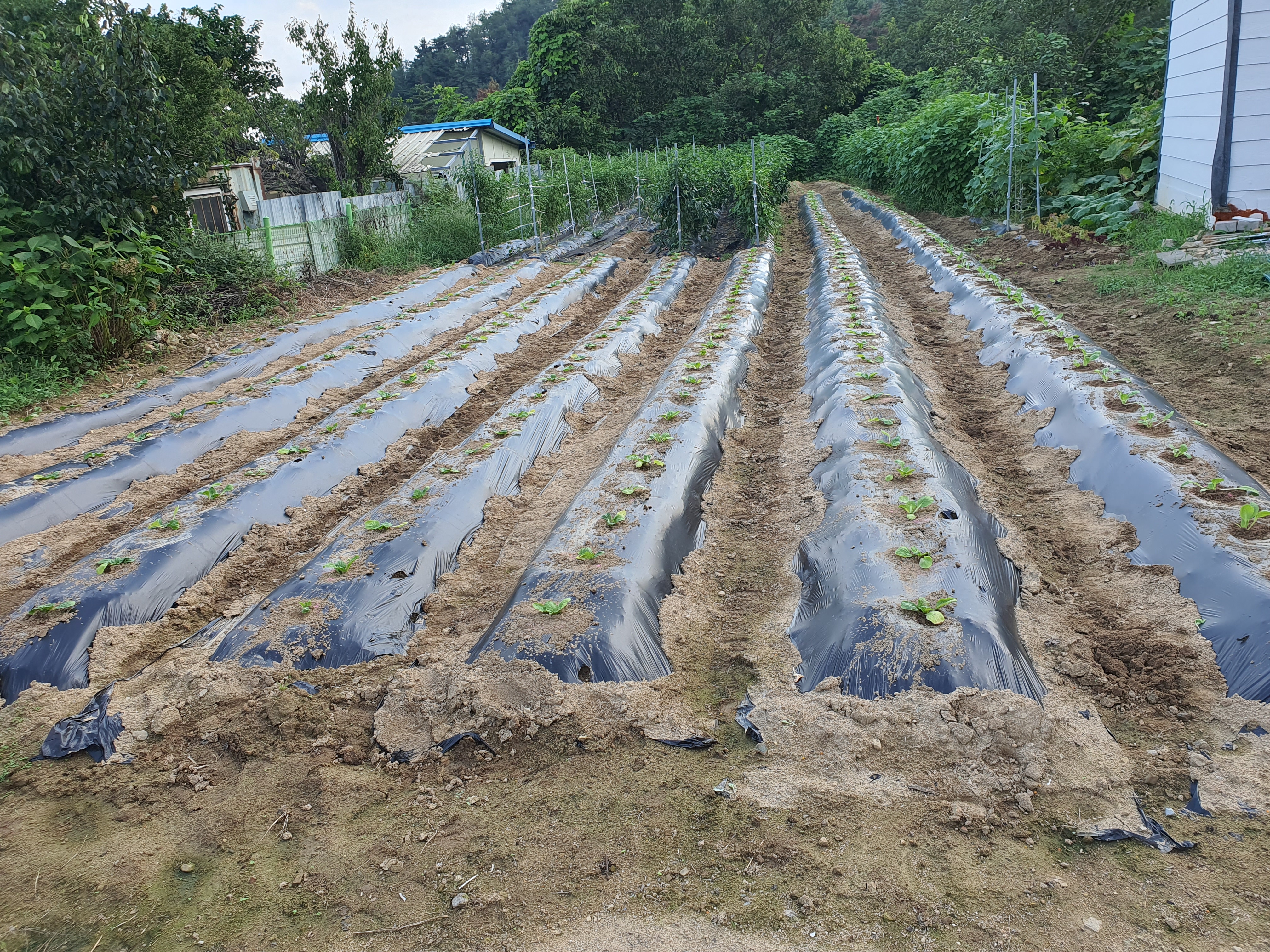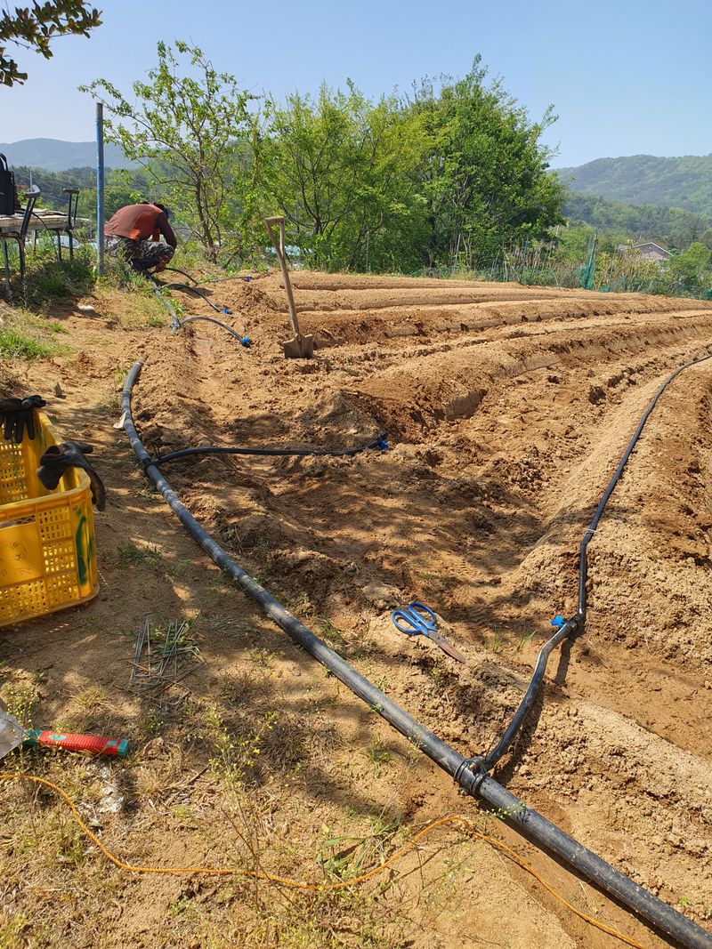 비료 골에 뿌려주고 멀칭 아래부분에도 뿌려줌