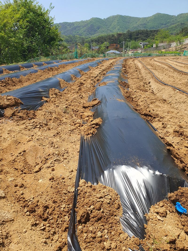 고추 정식 일주일 전 멀칭작업및 점적호스 설치 완료