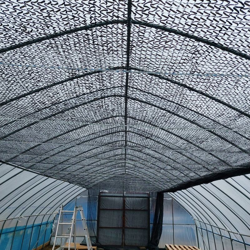 모판 펼치기 작업 차광망으로 햇빛차단 해주었음