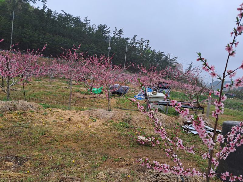 복숭아솎기 끝냈어요. 이제 봉지싸기 시작하기전 예초기로 제초작업도 해야되고 풀과의 전쟁이 끝이없네요.