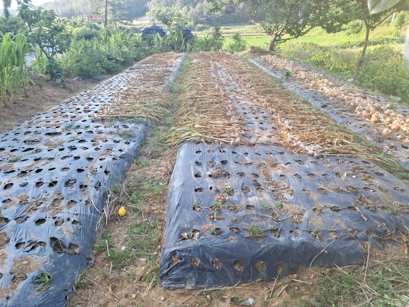 복숭아봉지싸기 끝내고 예초기로 풀까지 다 깍고난후 방제작업끝내고 양파와 마늘캐기. 형제들과 얘들과 우리먹을정도. 비가 오질않아 땅이 너무 단단해 잘 뽑히지않는게 있어 조금 힘들었답니다. 이곳은 진짜 비오길 간절히 기다린다능.... 비온다더니 진짜 서너방울 떨...