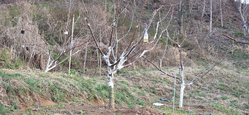 석회보르도 방제 매실,살구 물주기 복숭아,체리 눈접 루비오스 사과 2그루/겔노트1그루 식재