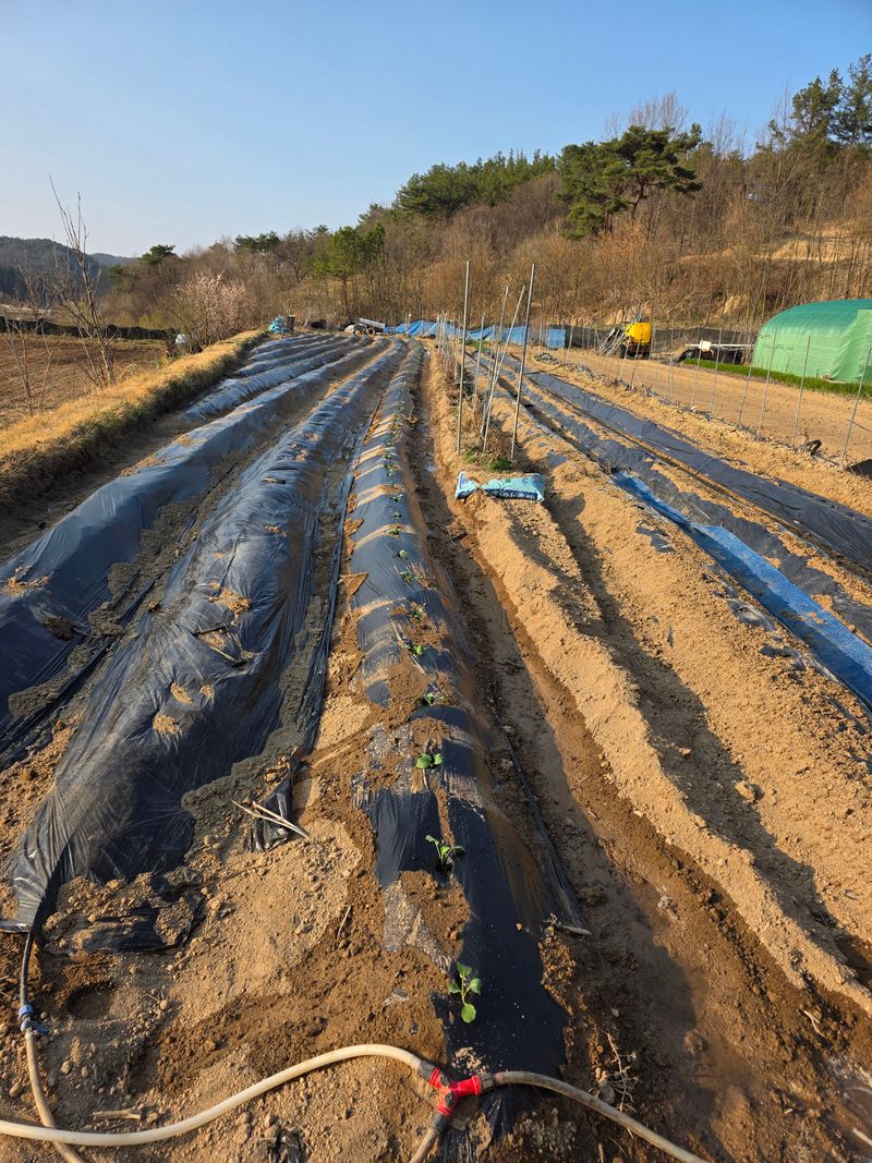 퇴비60포살포 상추씨앗 뿌림 고구마 수확기 옮김 유채발아. 지하수 펌