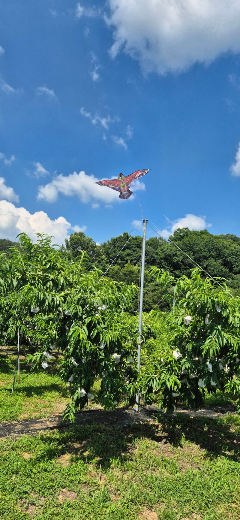 복숭아 나무 조류 퇴치용 독수리연, 반짝이 설치