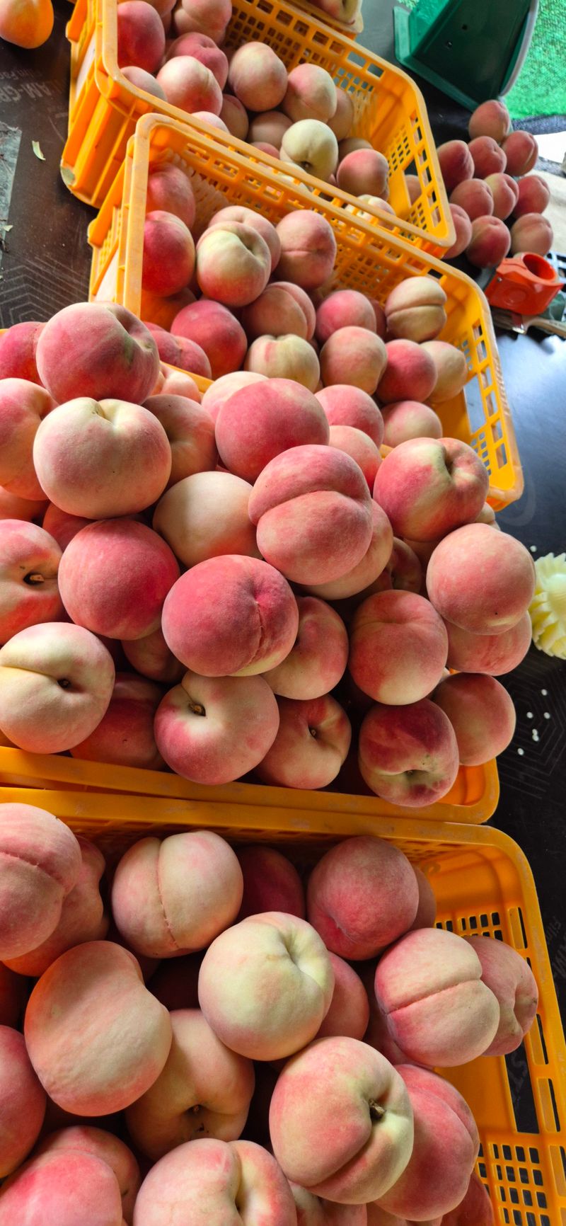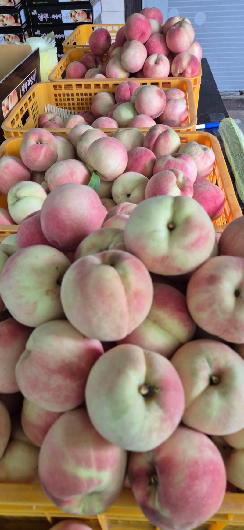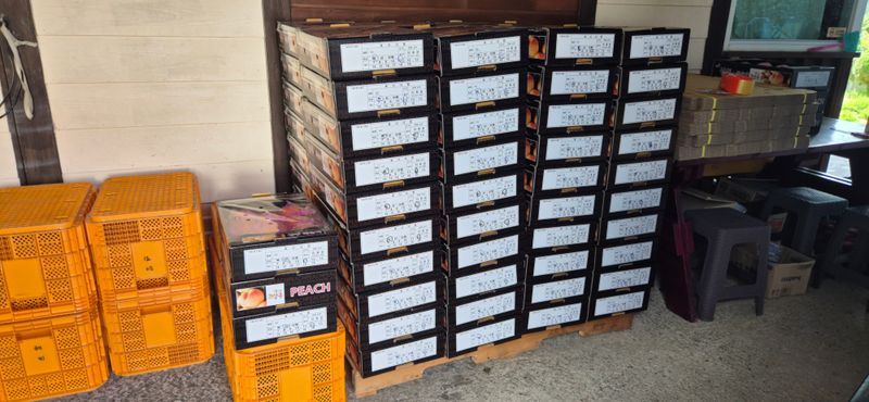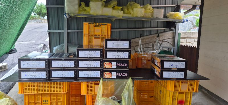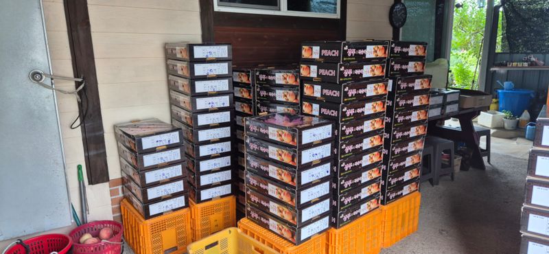 복숭아 마지막 수확 및 선별 작업 중 ㅇ 수확량 : 23컨테이너