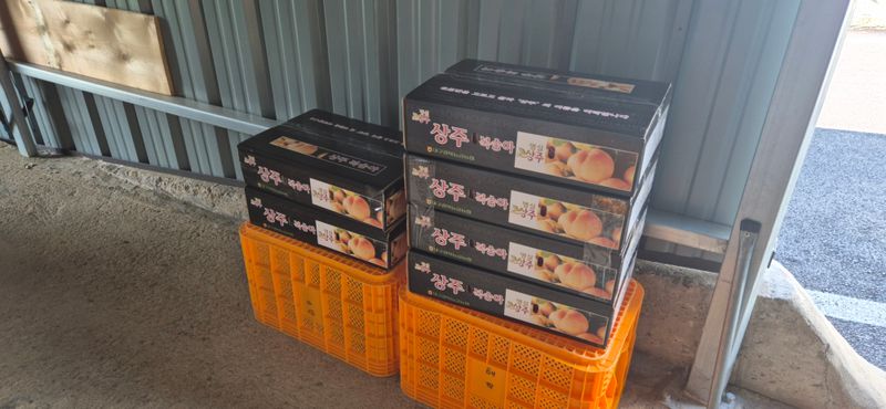 복숭아 1차 수확 : 12컨테이너 ㅇ 택배 : 36박스 /4.5Kg : - 발송완료 : 택배비 153,000원 - 정품 : 34박스(2Box 6 + 1Box 28 - 선물 : 2박스 (1Box 2) ㅇ 조합용 : 43박스 대기(특 40, 기스 3...