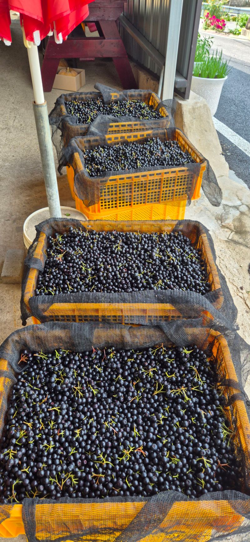 복숭아 밭둑에 심어 놓은 아로니아 5그루에서 열매 수확하여, 청을 만듬.