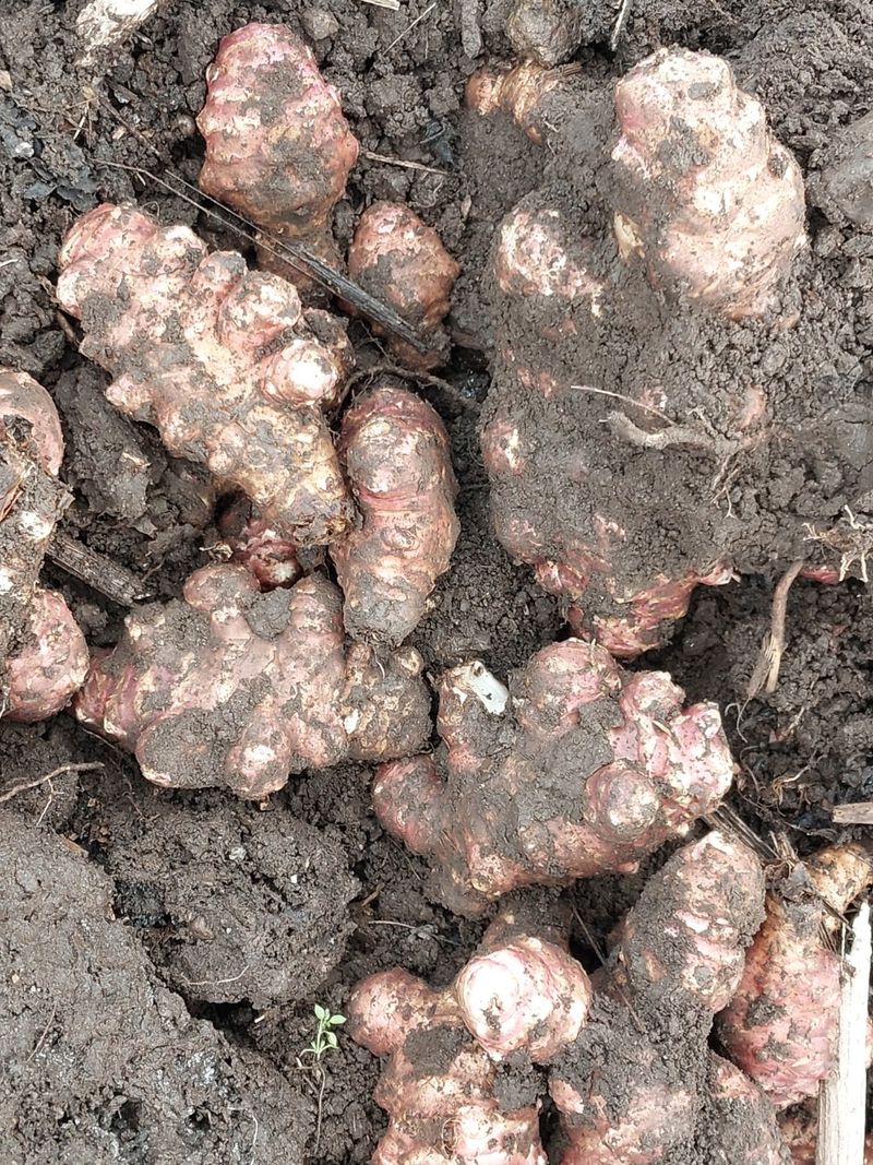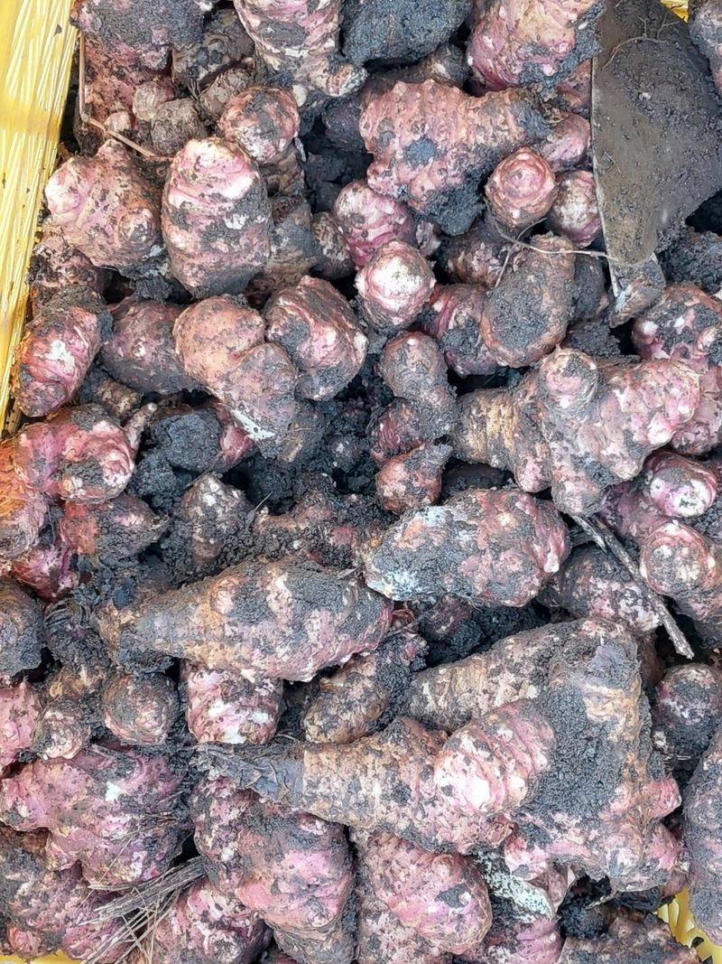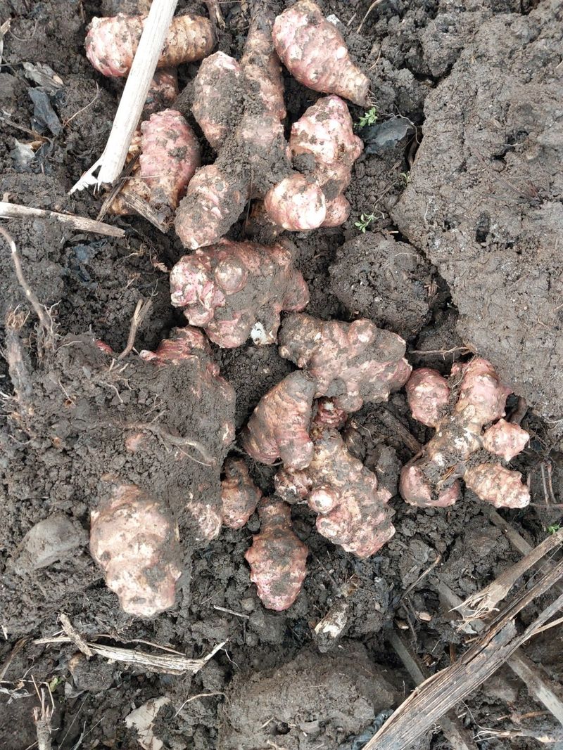 돼지감자 주는이 들어와서 어제는슈퍼돼지감자를 켔는데 지난해보다 량이덜나오고 크기도 작네요 너무더워서 그럴까요 아직추워서 흙이 살짝얼어서 포크로 켔네요