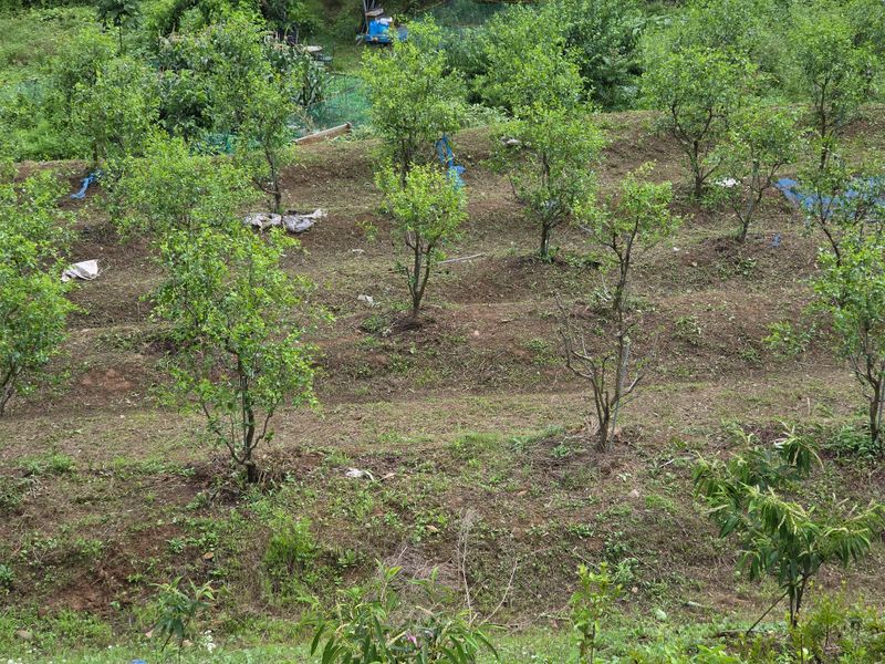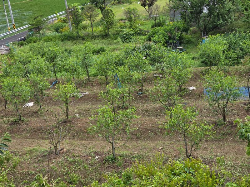 에취기로 왕대추밭에 풀작업을 해주웠더니 깔끔해지였네유