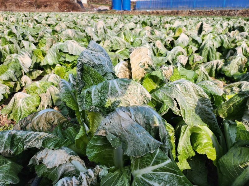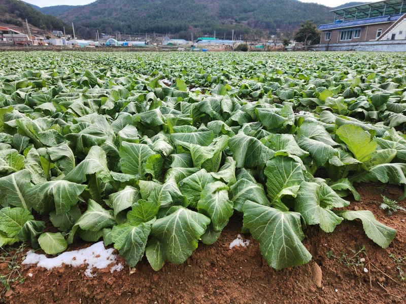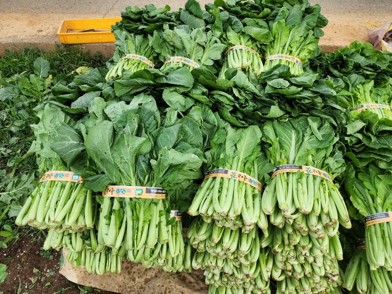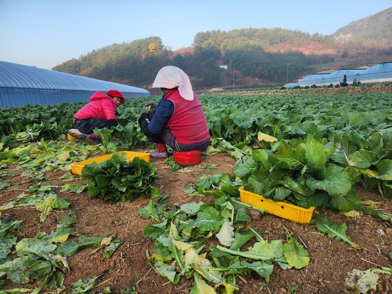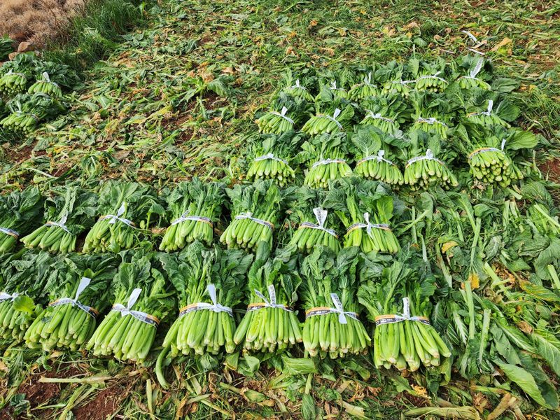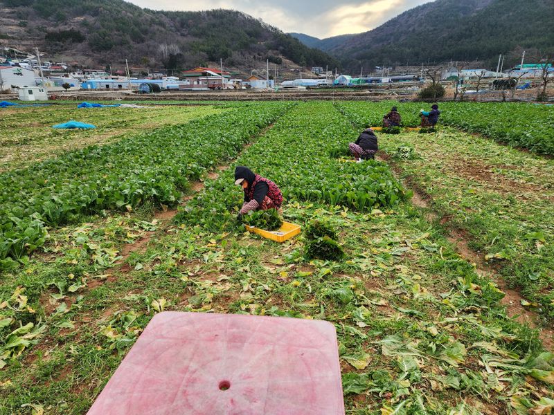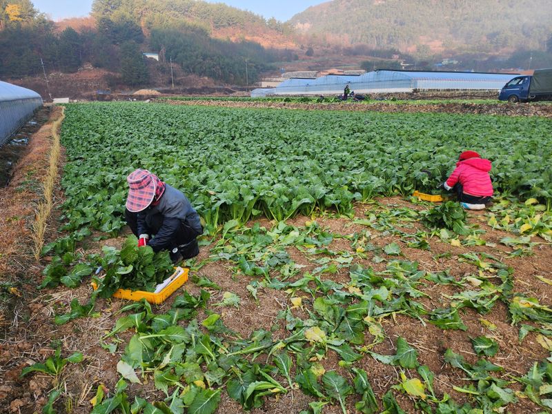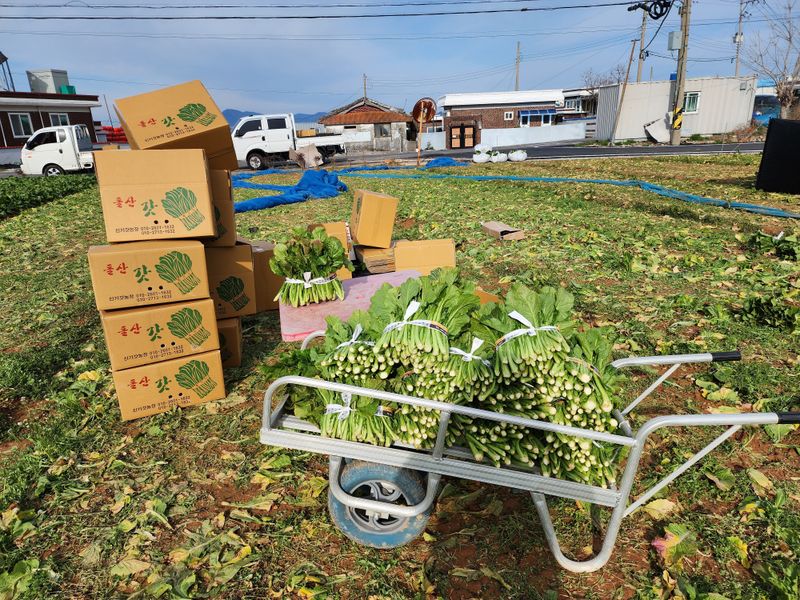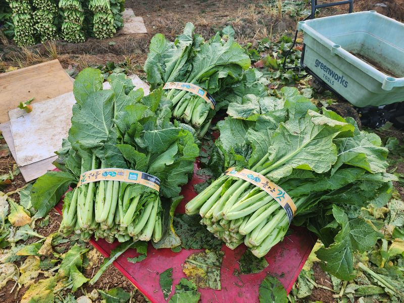 안녕하세요 돌산 갓스타입니다 돌산 갓 수확은 날씨에 영향을 많이 받습니다 내일은 날씨가 좋아서 수확하기를 기원합니다
