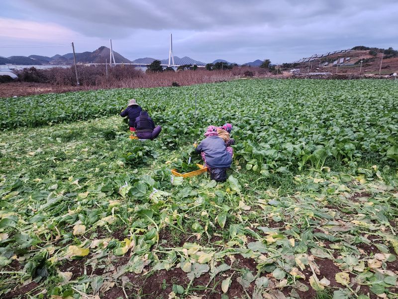 돌산에서 장인어른이랑 전문적으로 10000평 돌산갓을 재배하여 판매중입니다 2023년부터 시작하여 초보이지만 누구보다 더 열심히 배우고 있습니다