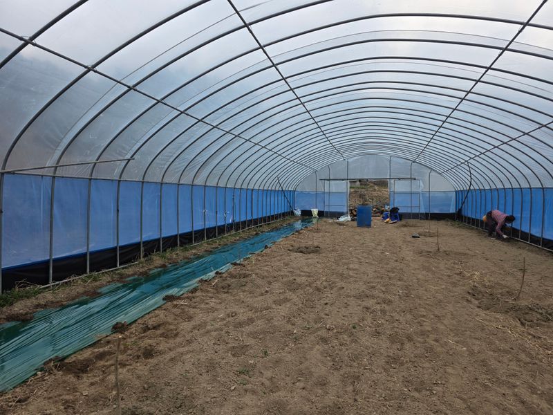하우스 복숭아 거반도 사이골에 고추 세줄 식재 준비 완료
