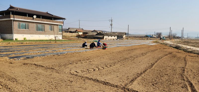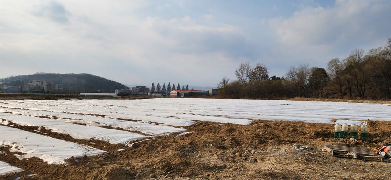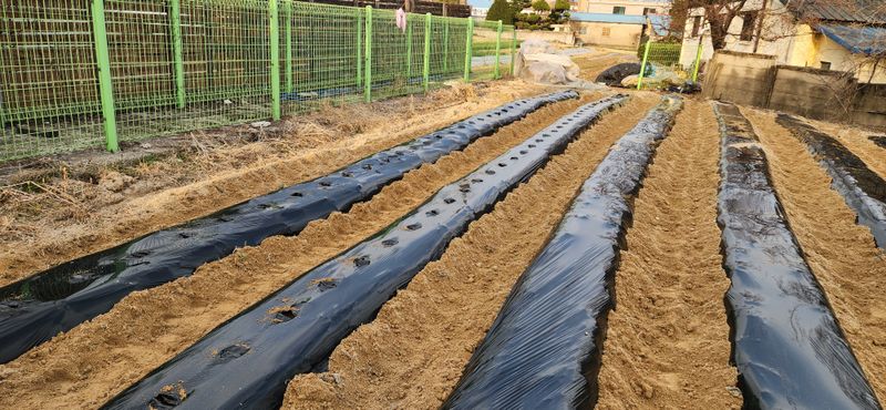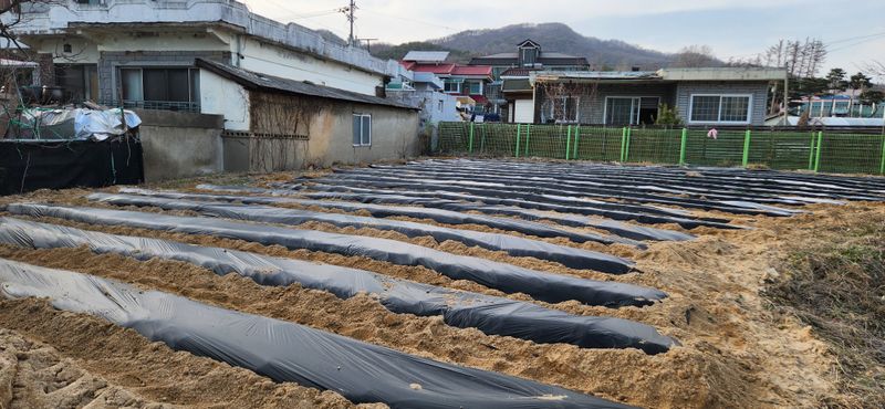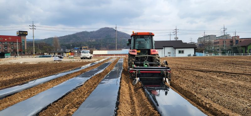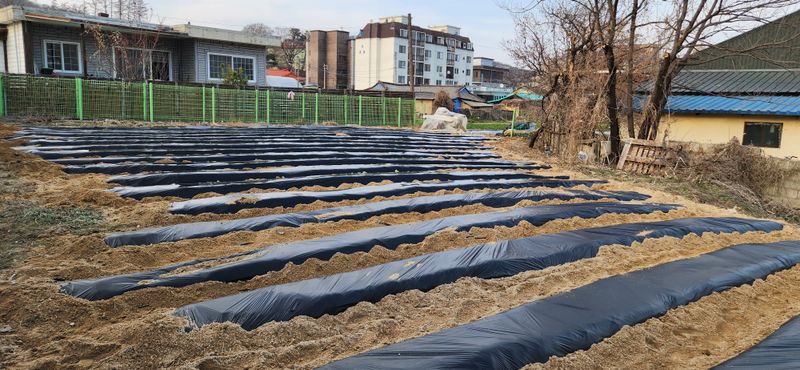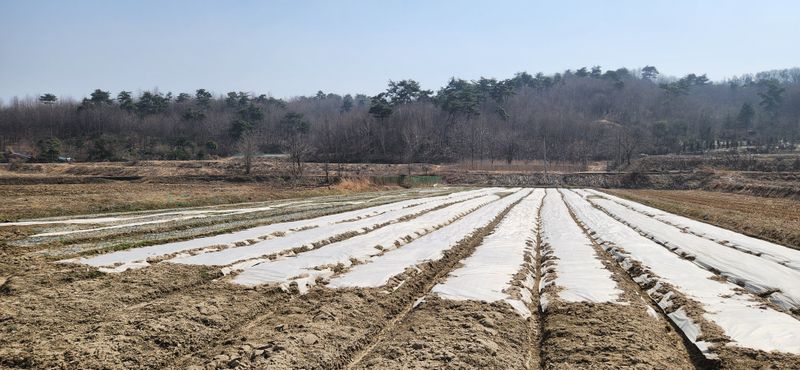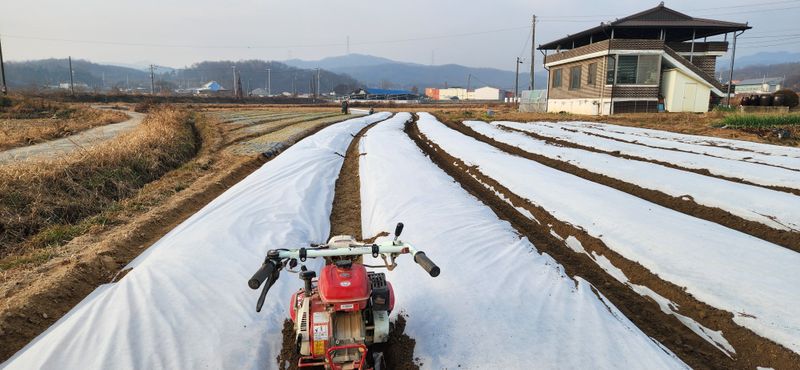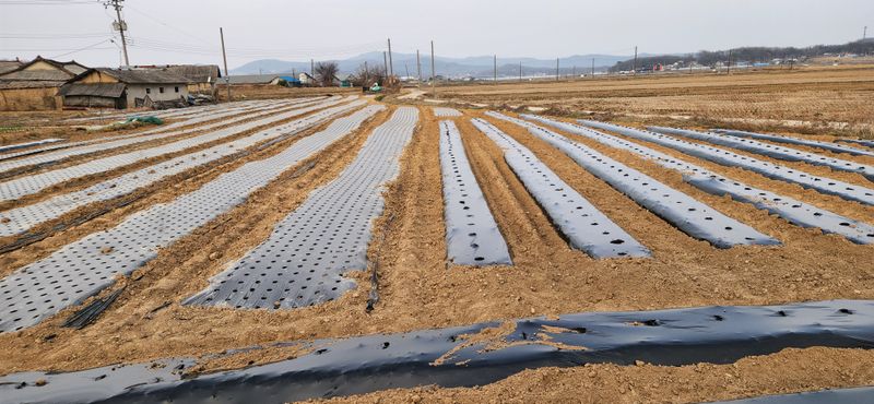 감자밭 피복작업(0.02×150×500) 4롤 사용