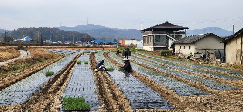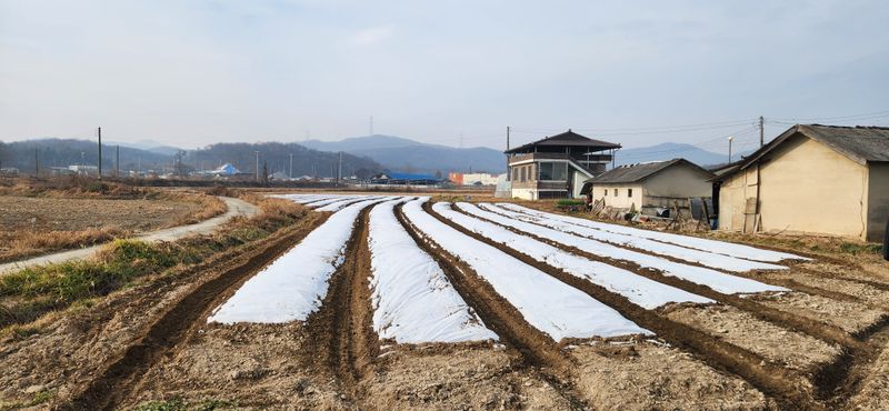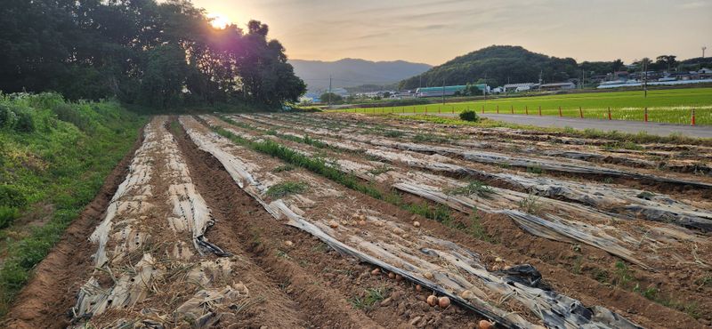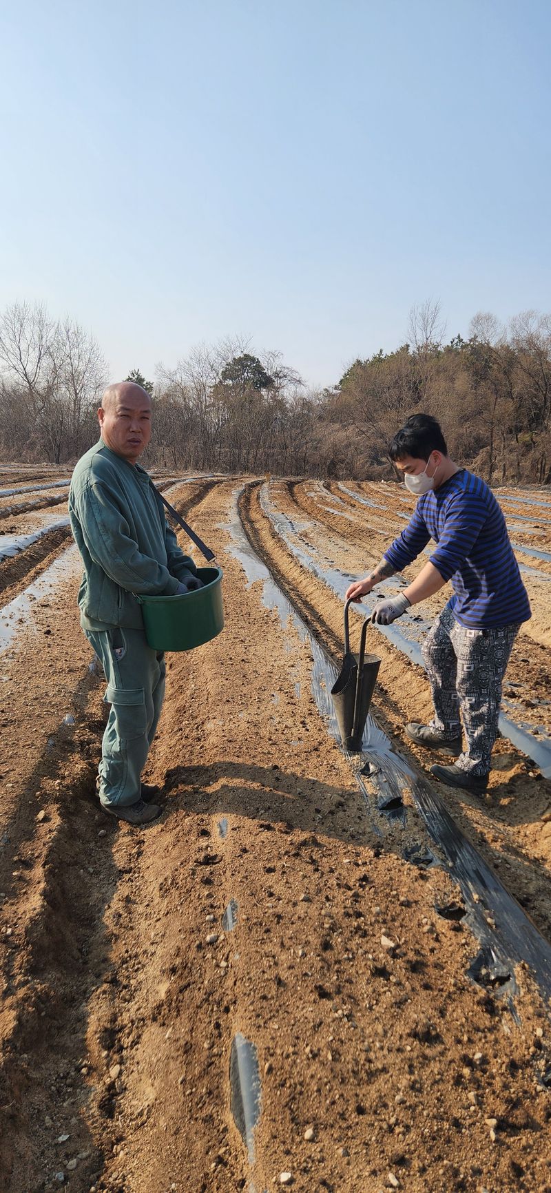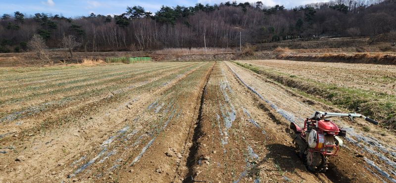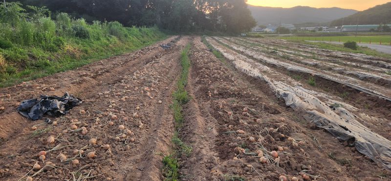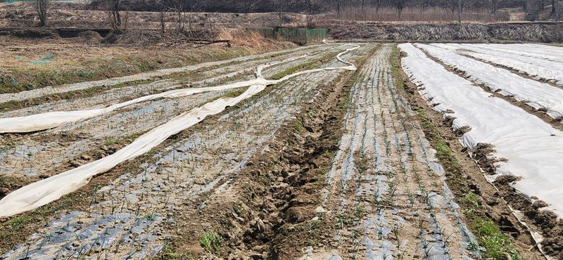 장평리 양파밭 부직포제거 및 웃거름 살포함(엔케이 비료 25kg)
