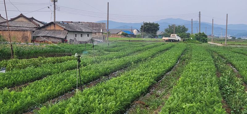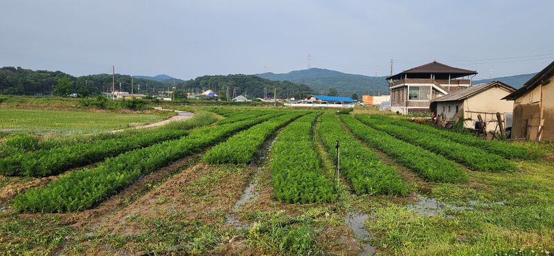 친환경(무농약)인증을 받다 보니 풀 하고의 전쟁이네요.. 오늘은 당근밭고랑 예초작업 및 관수 하였습니다..