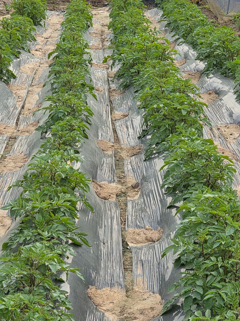 비가 보슬보슬 내리고 있음 마늘 비닐밖으로 올리기 작업